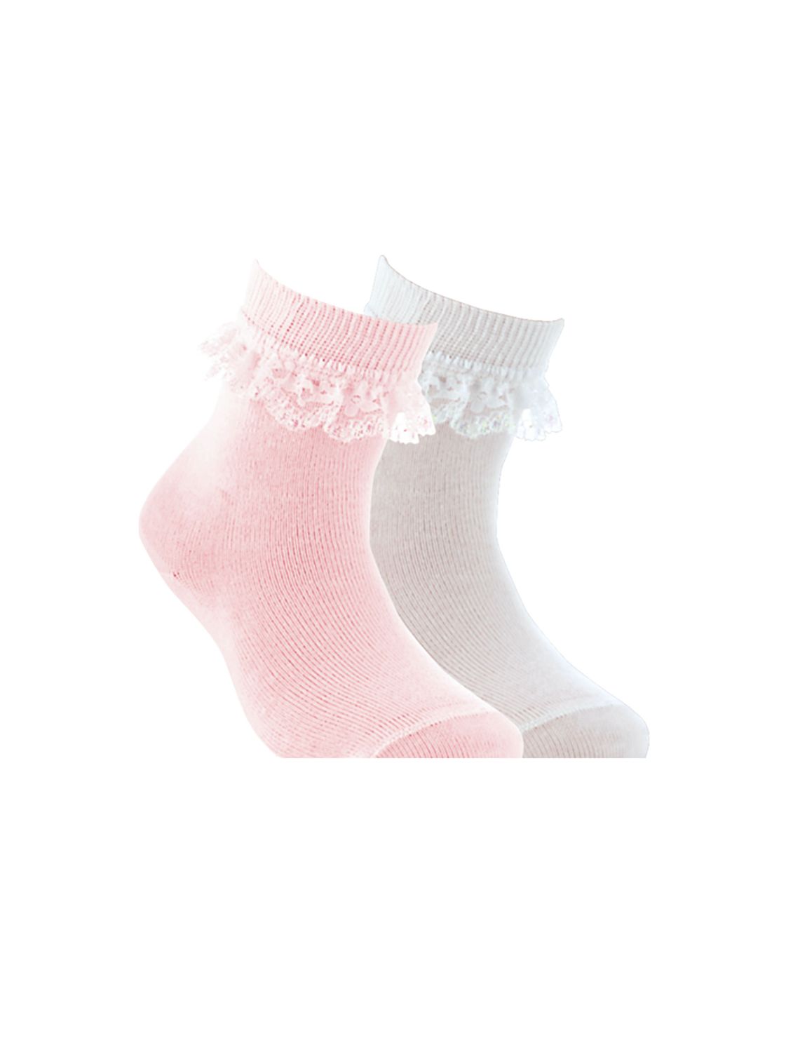 Детские носки из хлопка, с пришитой к борту кружевной лентой, однотонные. Для девочек.