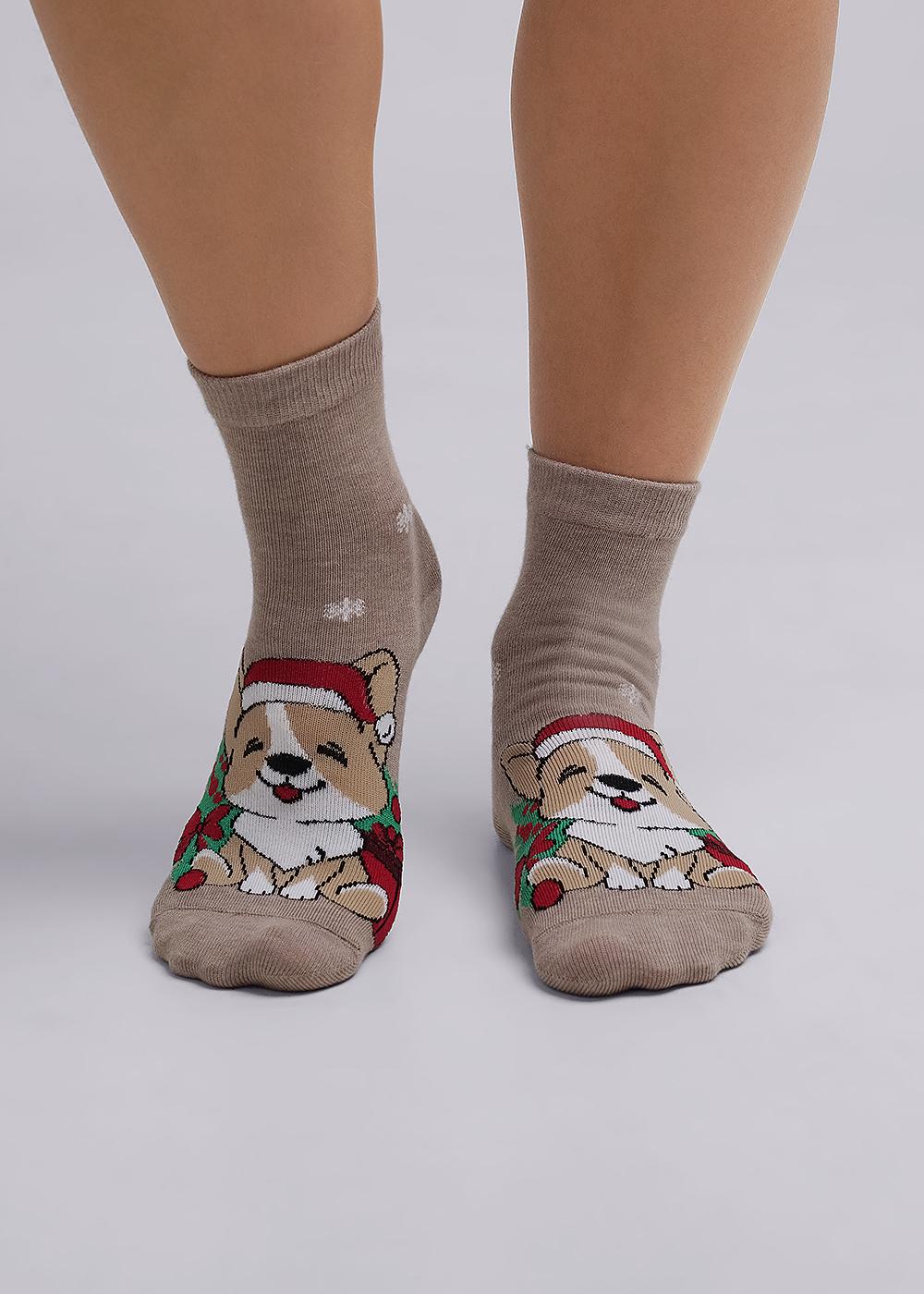новогодние носки для девочки с рисунками мордочки собаки корги