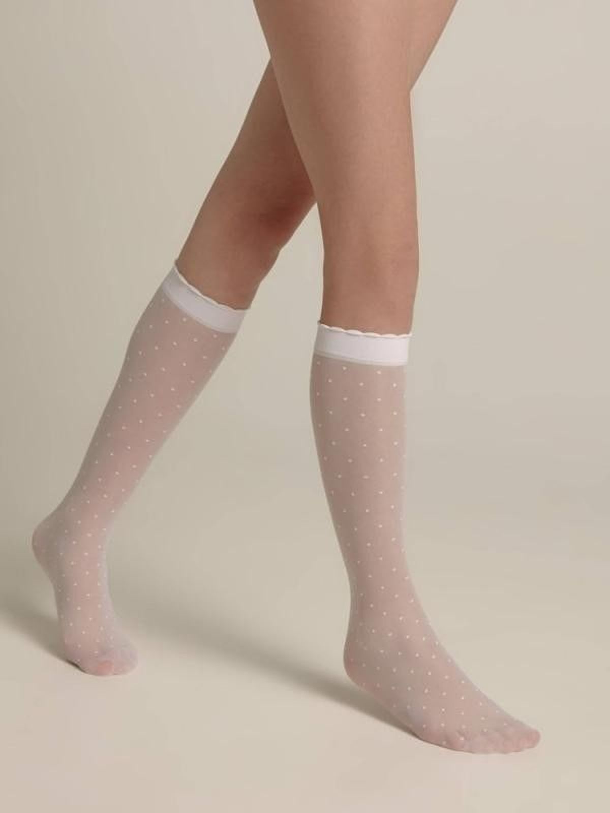 Тонкие и эластичные гольфы с рисунком «точки» DOTS будут прекрасно смотреться как в повседневном, так и в нарядном образе девочки.