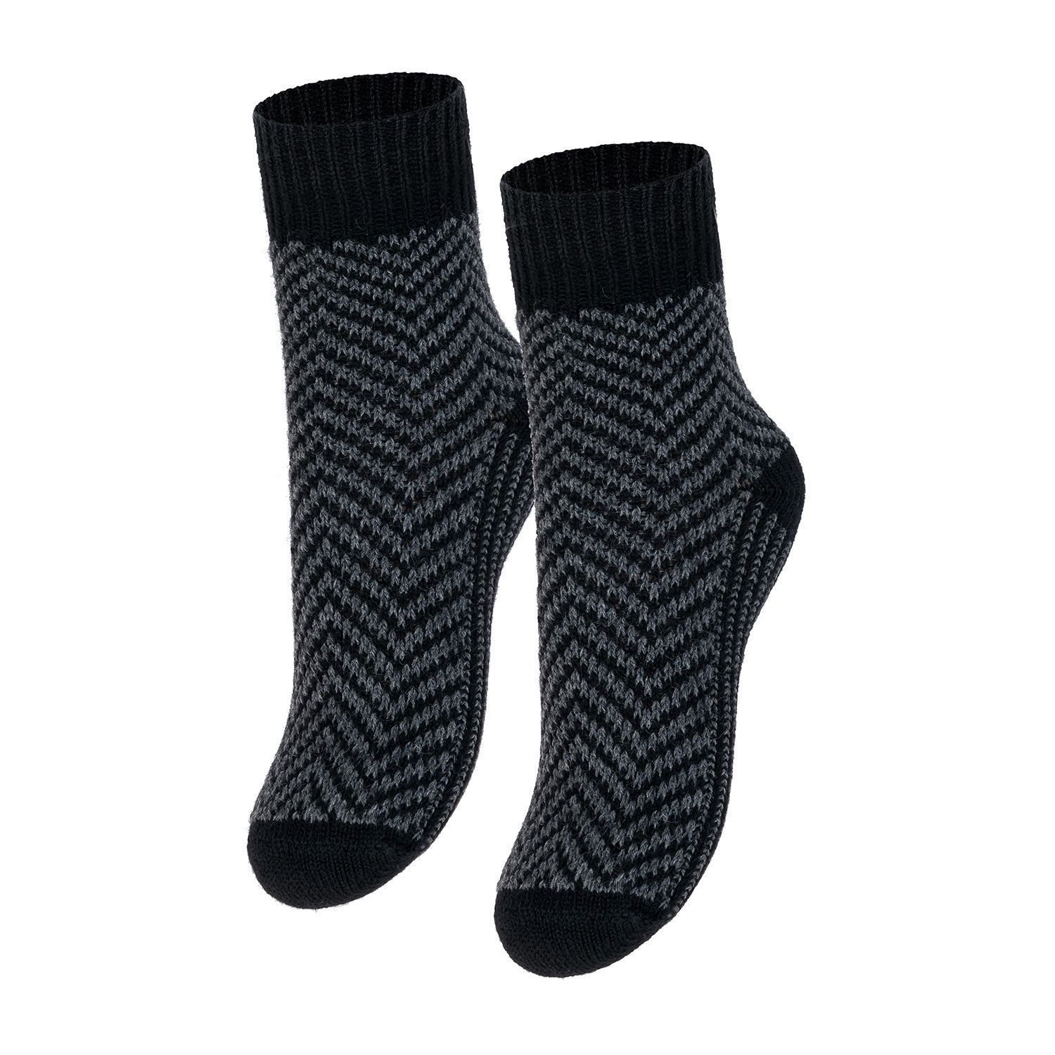 Детские полушерстяные носки с одинарным бортом и жаккардовым, двухцветным рисунком.
