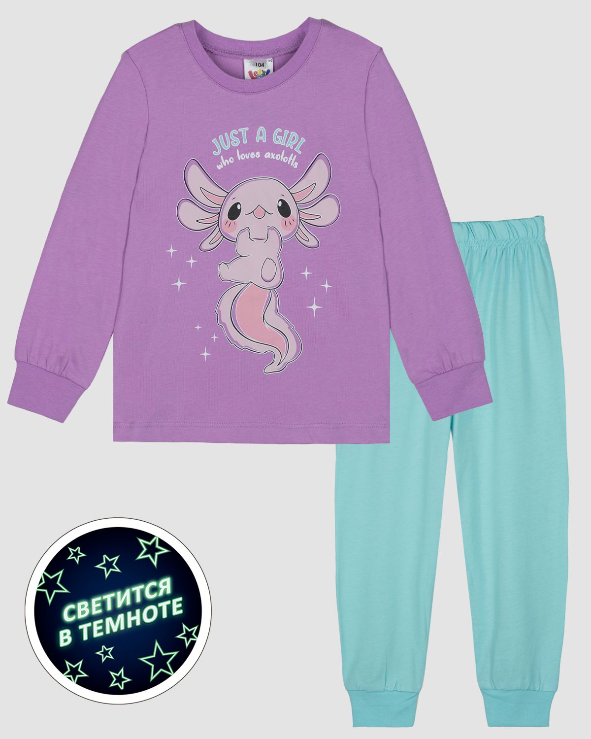 Пижама для девочки (джемпер+брюки) Фиолетовый Let's go Хлопок 91269 купить оптом в brandom.shop