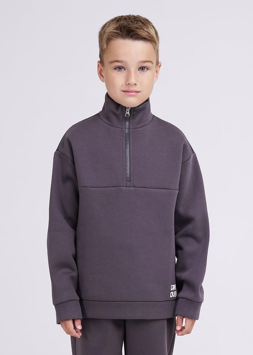 Толстовка с короткой молнией из футера с начёсом, стильная модель для активных подростков. Свободный силуэт, мягкий воротник стойка, минималистичный принт. Сочетай толстовку с джинсами и тёплыми брюками, будь в тренде и в тепле!