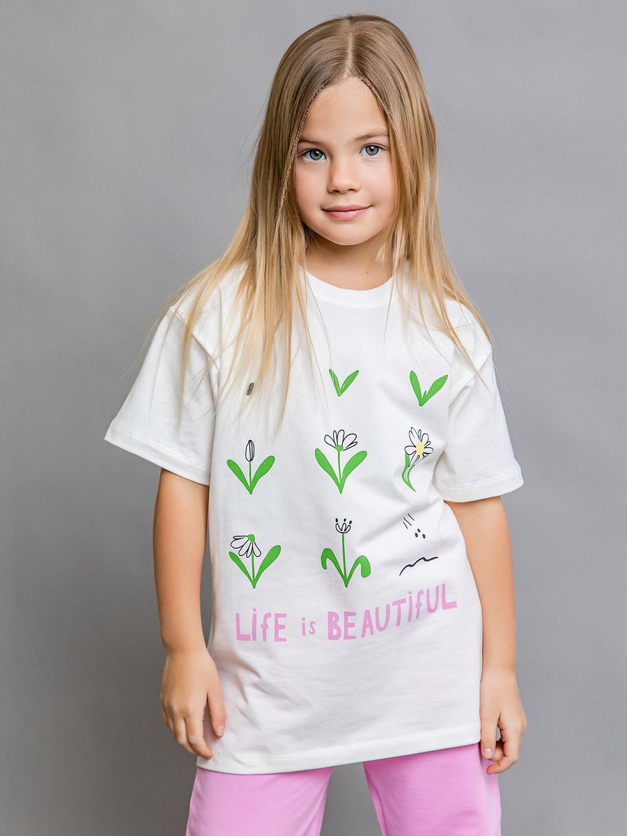 Футболка для девочки Белый Batik Хлопок с добавлением синтетики 0040_ЛС24 купить оптом в brandom.shop
