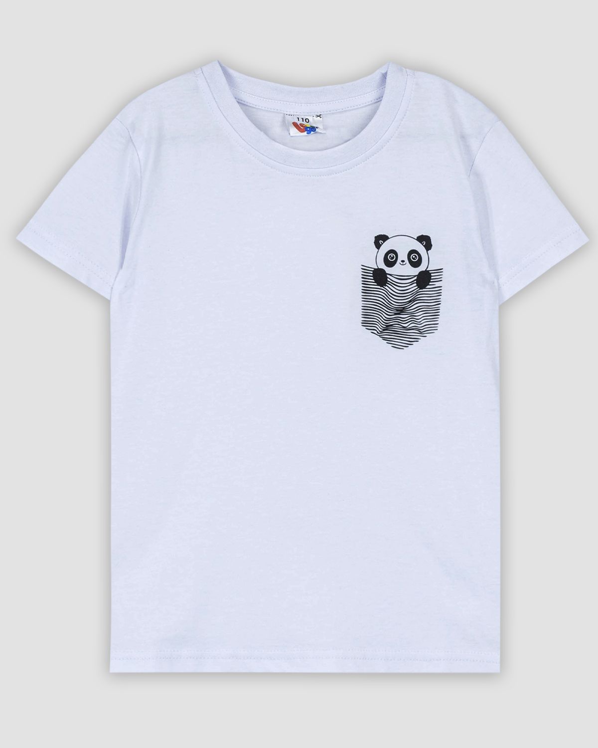 Футболка детская прямого силуэта, с втачным коротким рукавом. Горловина круглая, обработана воротником из рибаны. Горловина спинки внутри укреплена бейкой из кулирки. Низ изделия и рукава обработан швом вподгибку. На полочке принт ШЕЛКОГРАФИЯ.