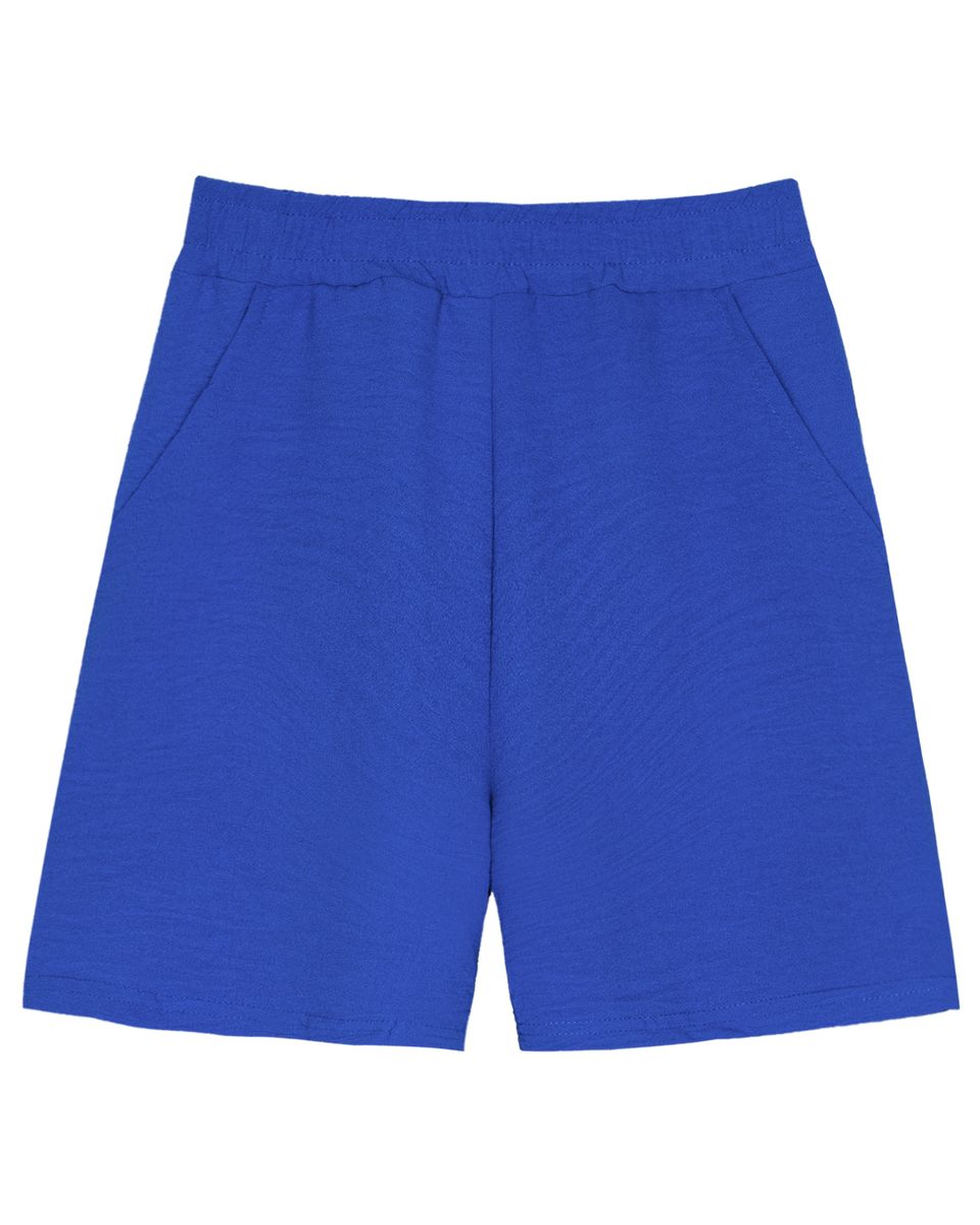 Шорты для девочки, удлиненные, прямого силуэта. Отрезной пояс, из основного полотна, с эластичной тесьмой внутри. На передней половинке шорт карманы с отрезным бочком. Низ изделия обработан швом в подгибку.