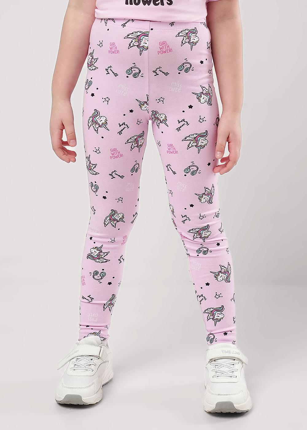 Лосины для девочки прилегающего силуэта. Пояс цельнокроенный, с эластичной тесьмой внутри, закрепленной в шов. Низ лосин обработан швом вподгибку.