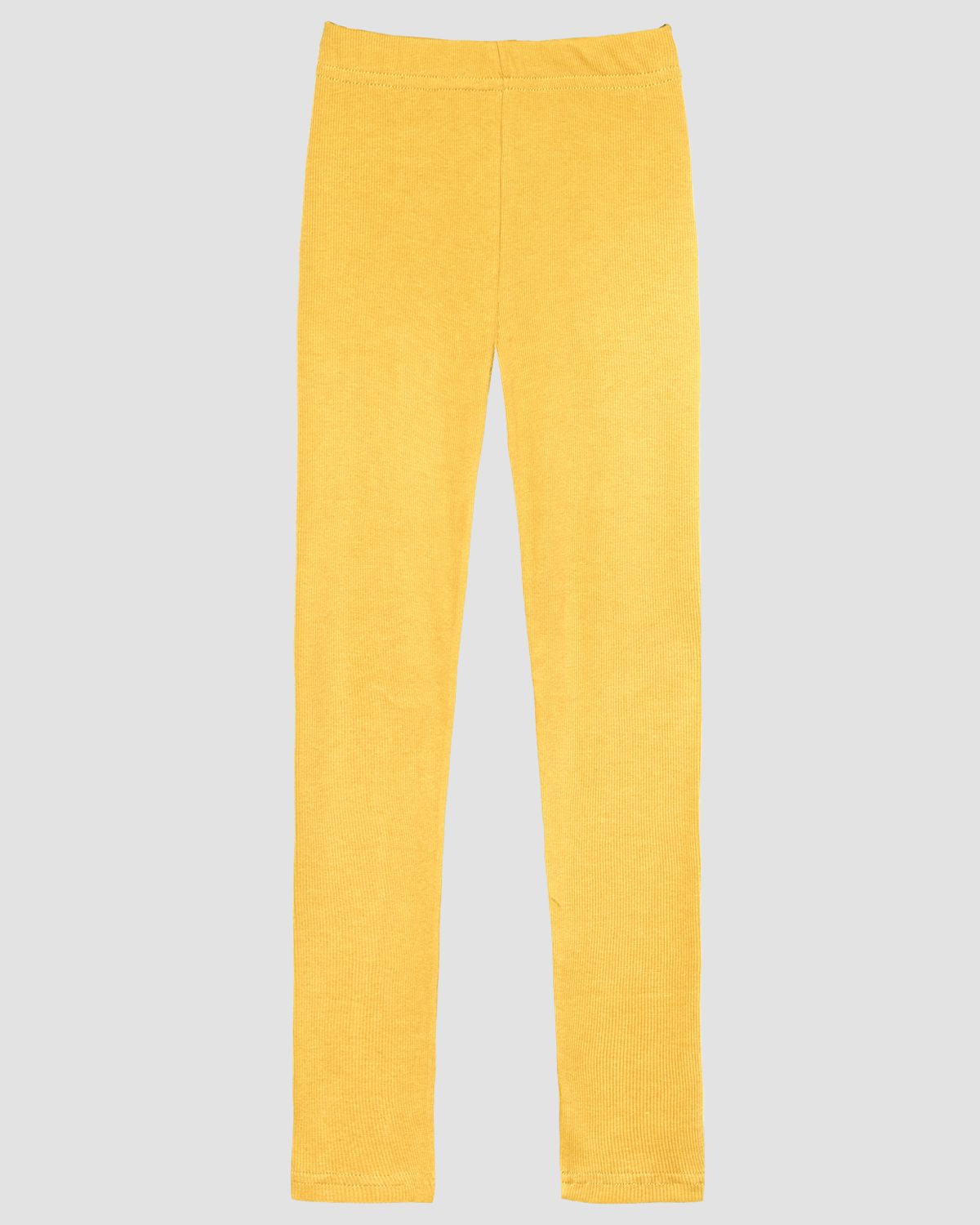 Лосины для девочки прилегающего силуэта. Пояс цельнокроенный, с эластичной тесьмой внутри, закрепленной в шов. Низ лосин обработан швом вподгибку.