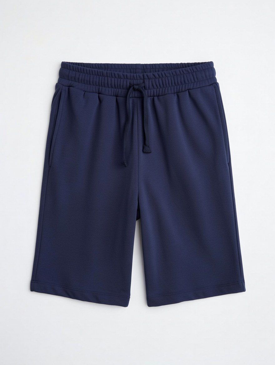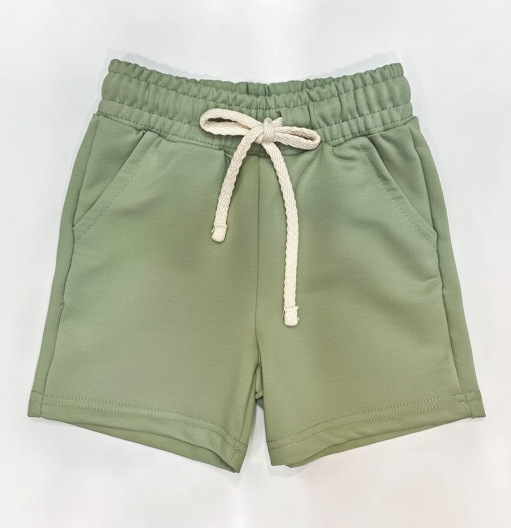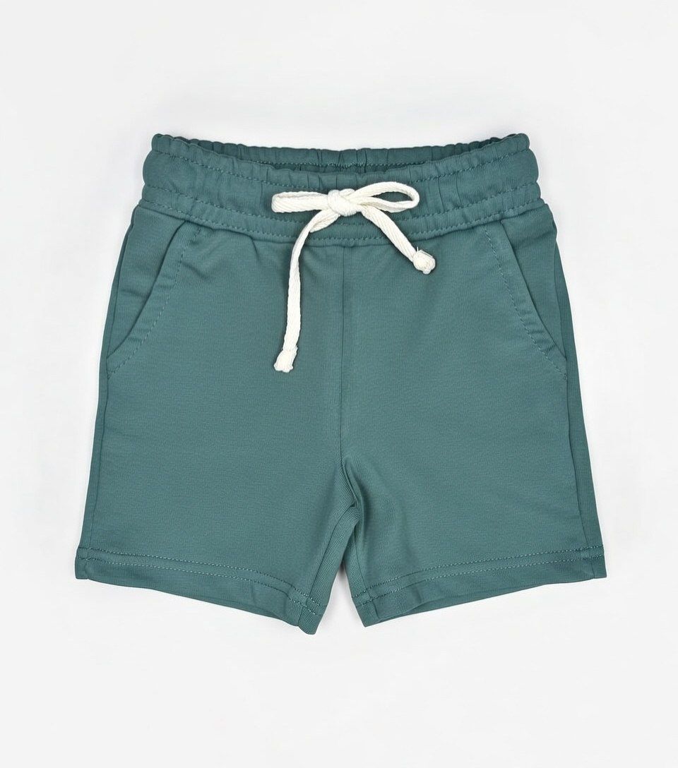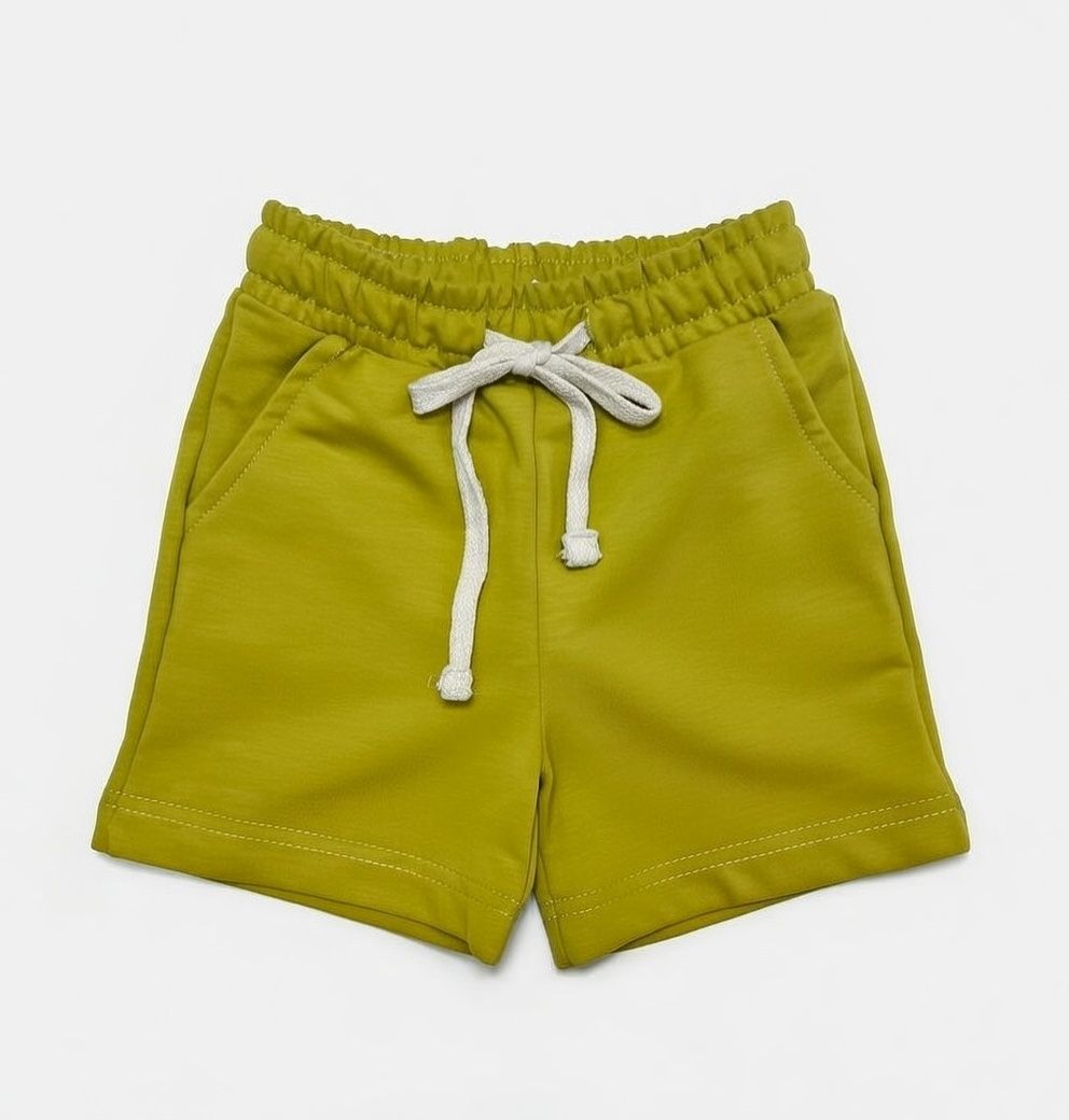 Шорты детские из футер петли 2-х нитки прямого покроя. Пояс отрезной, с резинкой и шнуром внутри. Шорты с карманами на передней половинке с отрезным бочком.