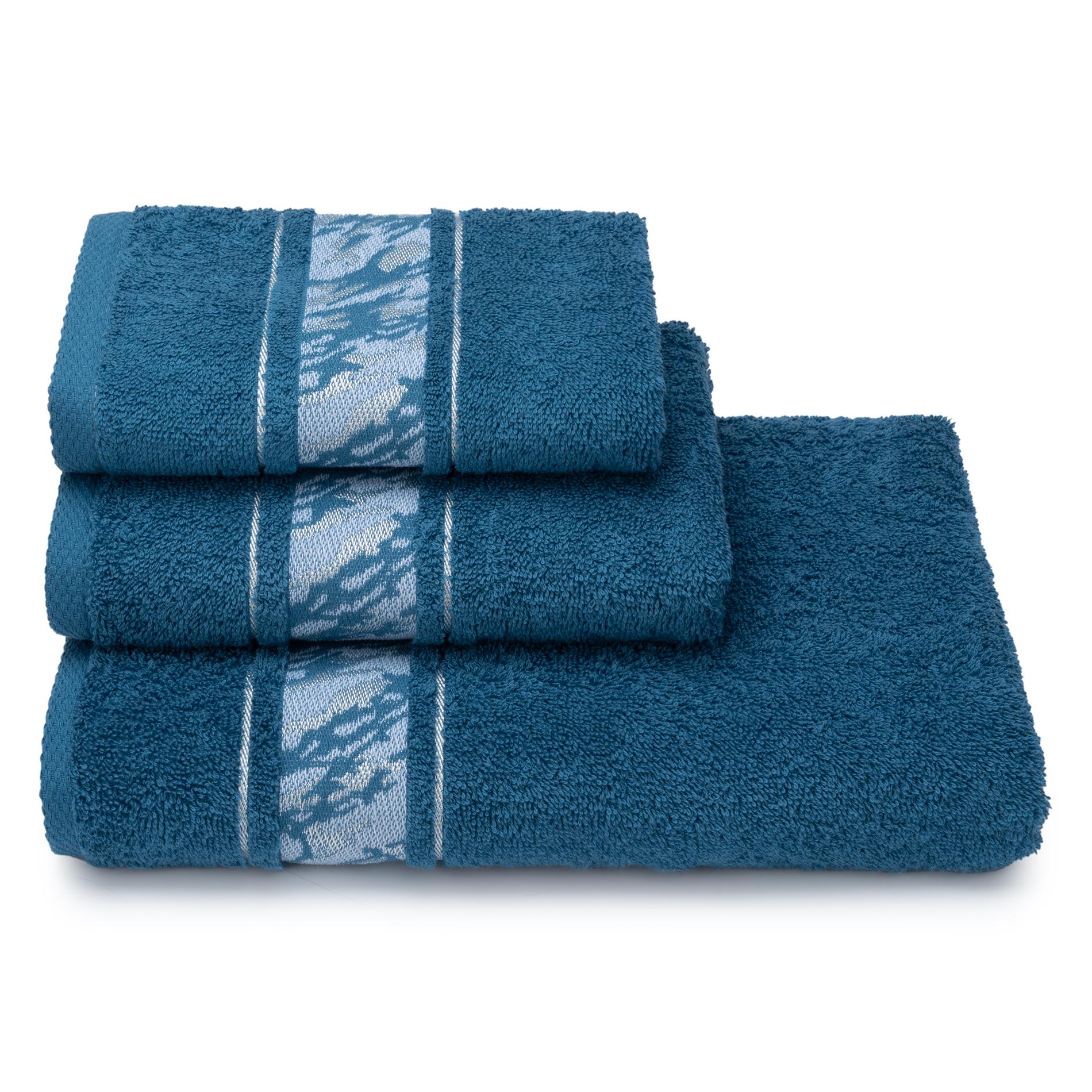 Полотенце гладкокрашенное. Полотно: махра.. Полотно: махра. Полотно: махра. Размер: 50х90 Состав: 100% хлопок. 400 г/м². Декорировано абстрактным рельефным рисунком в виде волны, переданным бордюром в структуре махровой части полотна, и дополнено полосой из серебристой полиэфирной нити.