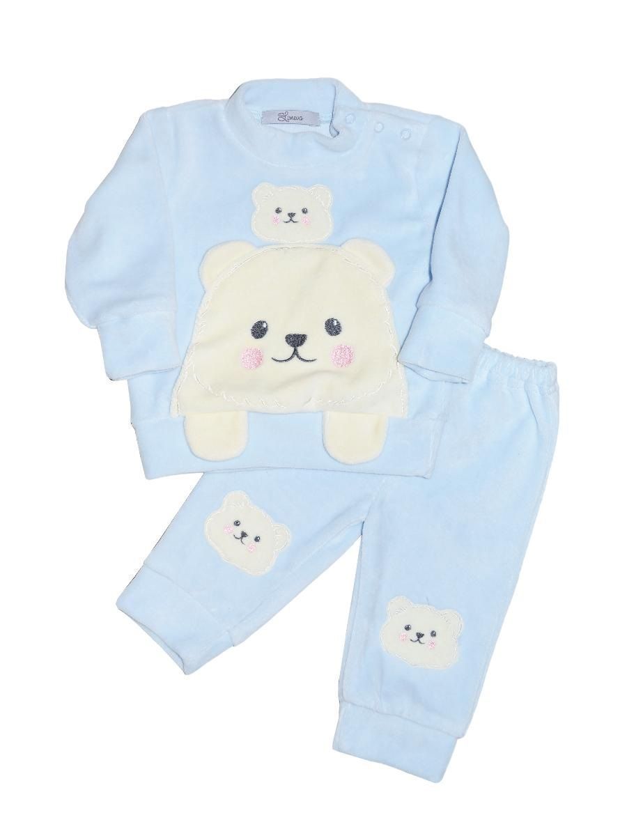 Комбинезон с центральной застежкой на молнии, контрастный животик, капюшон на подкладе, с ушками. Спинка украшена принтом "Зайка", на манжете.