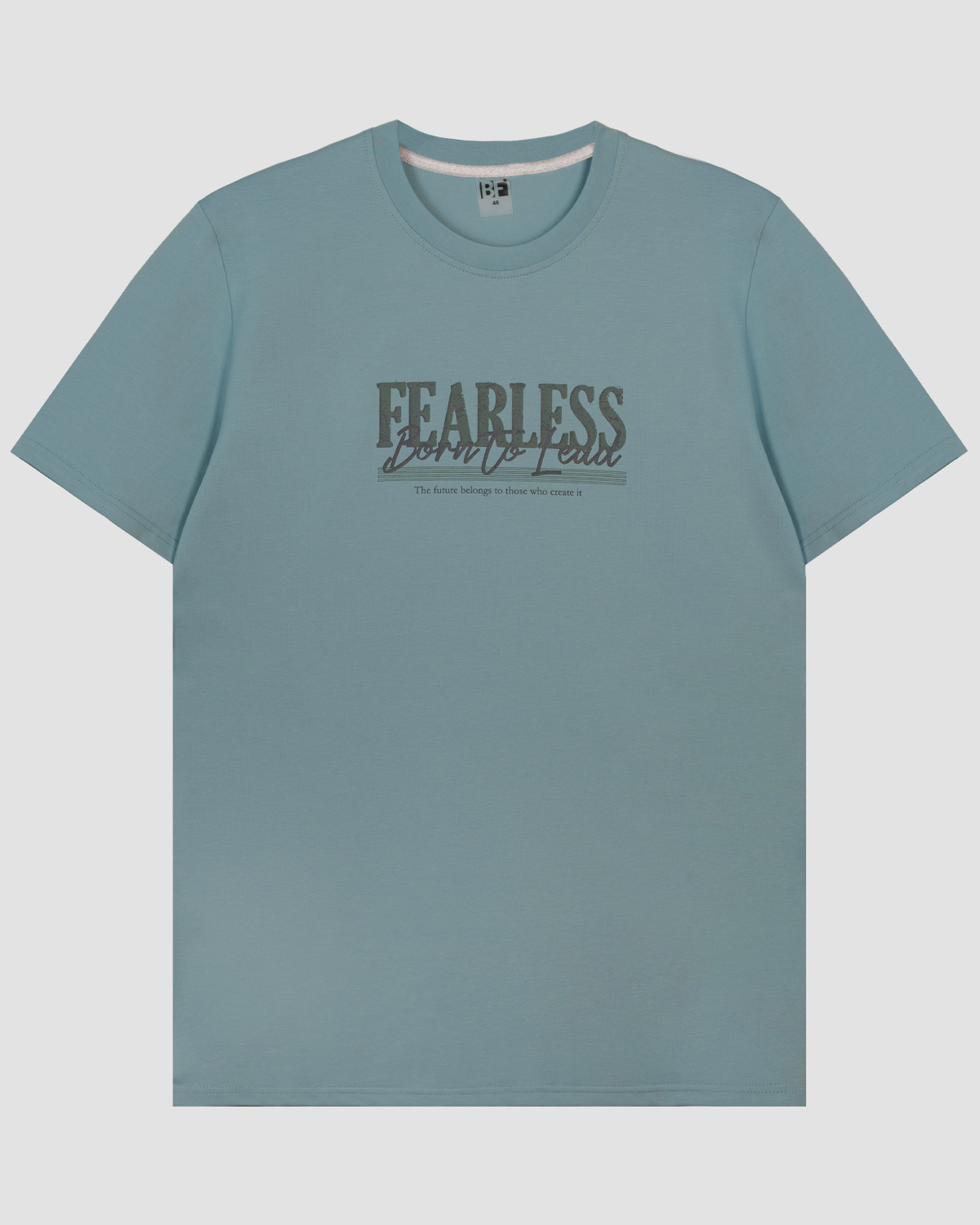 Футболка мужская прямого силуэта с втачным коротким рукавом. Горловина V-образная, обработана воротником из рибаны. Горловина спинки внутри укреплена бейкой из кулирки. По горловине полочки отделочная строчка. Низ изделия и рукавов обработан швом в подгибку. На полочке фотопринт. Надпись переводится как "Все возвращается к реке". Модель рассчитана на рост 176-182см.