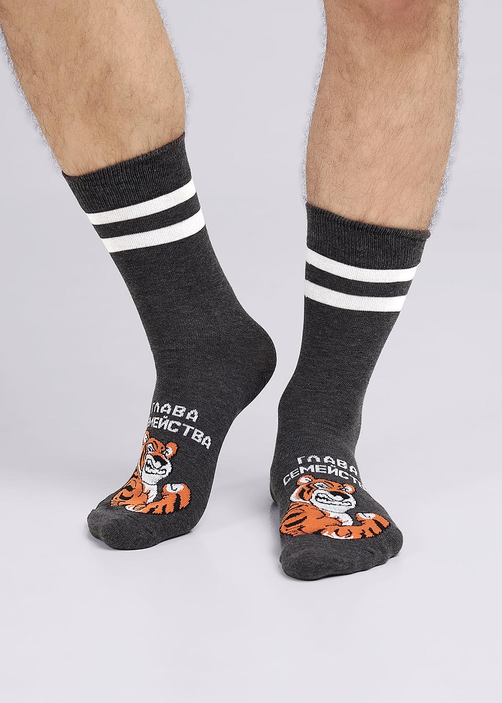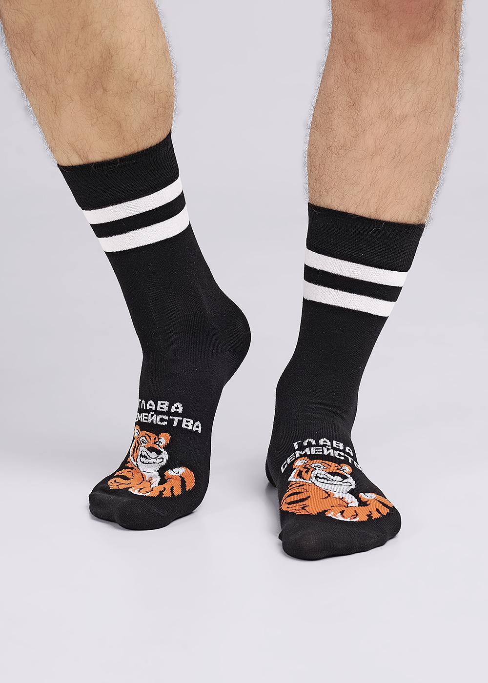 Мужские носки с рисунком тигр и надписью ГЛАВА СЕМЕЙСТВА