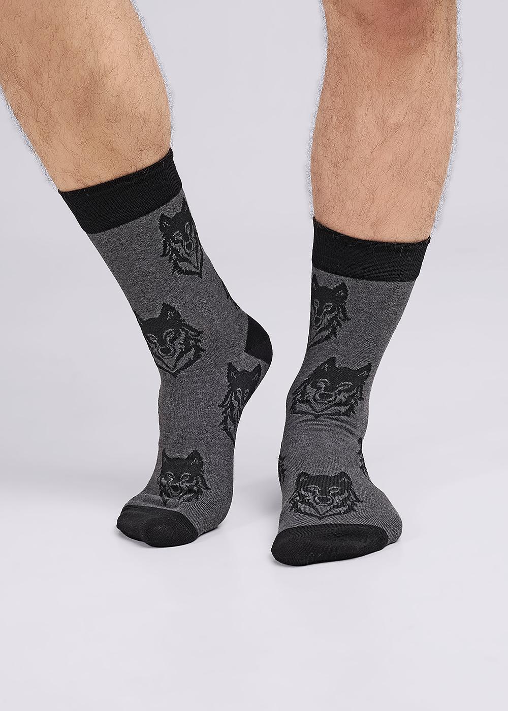 Мужские носки с выделенными мыском и пяткой и рисунком головы волка