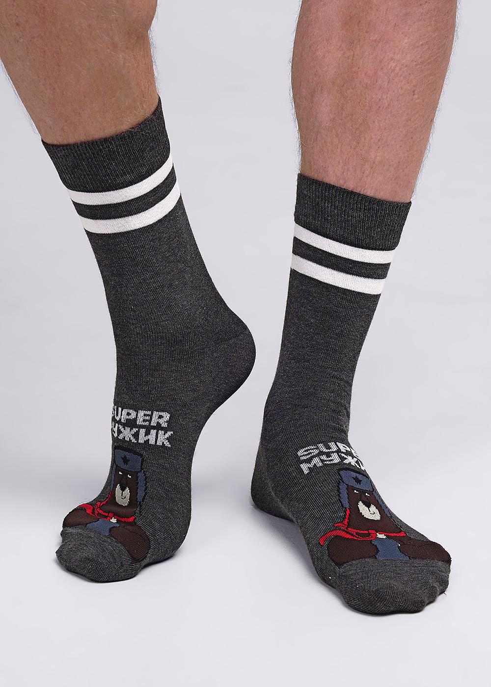 Мужские носки с рисунком медведь и надписью SUPER МУЖИК