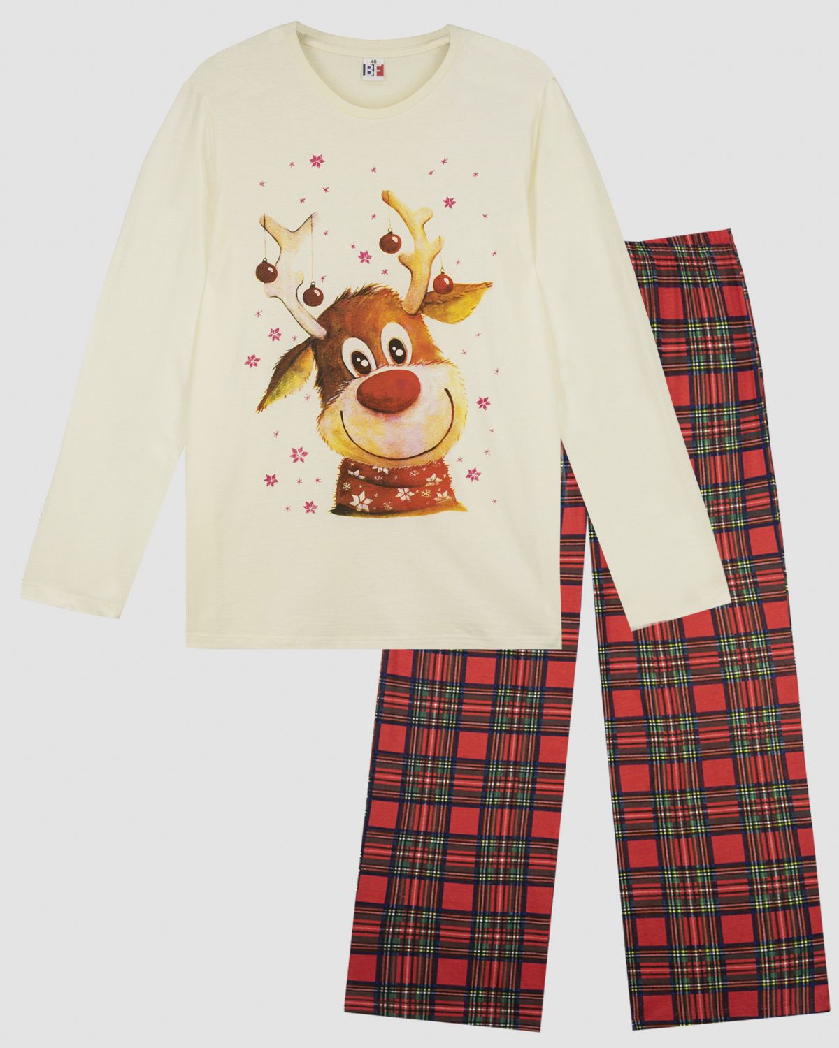 Пижама мужская, состоящая из джемпера и брюк. Джемпер прямого силуэта, с в тачным длинным рукавом. Горловина круглая, обработана воротником из рибаны. Низ изделия и низ рукава обработаны швом в подгибку. На полочке принт шелкография. Брюки прямого покроя, из набивного полотна. Пояс цельнокроенный, с эластичной тесьмой внутри. Низ изделия обработаны швом в подгибку. Модель рассчитана на рост 176-182 см.
