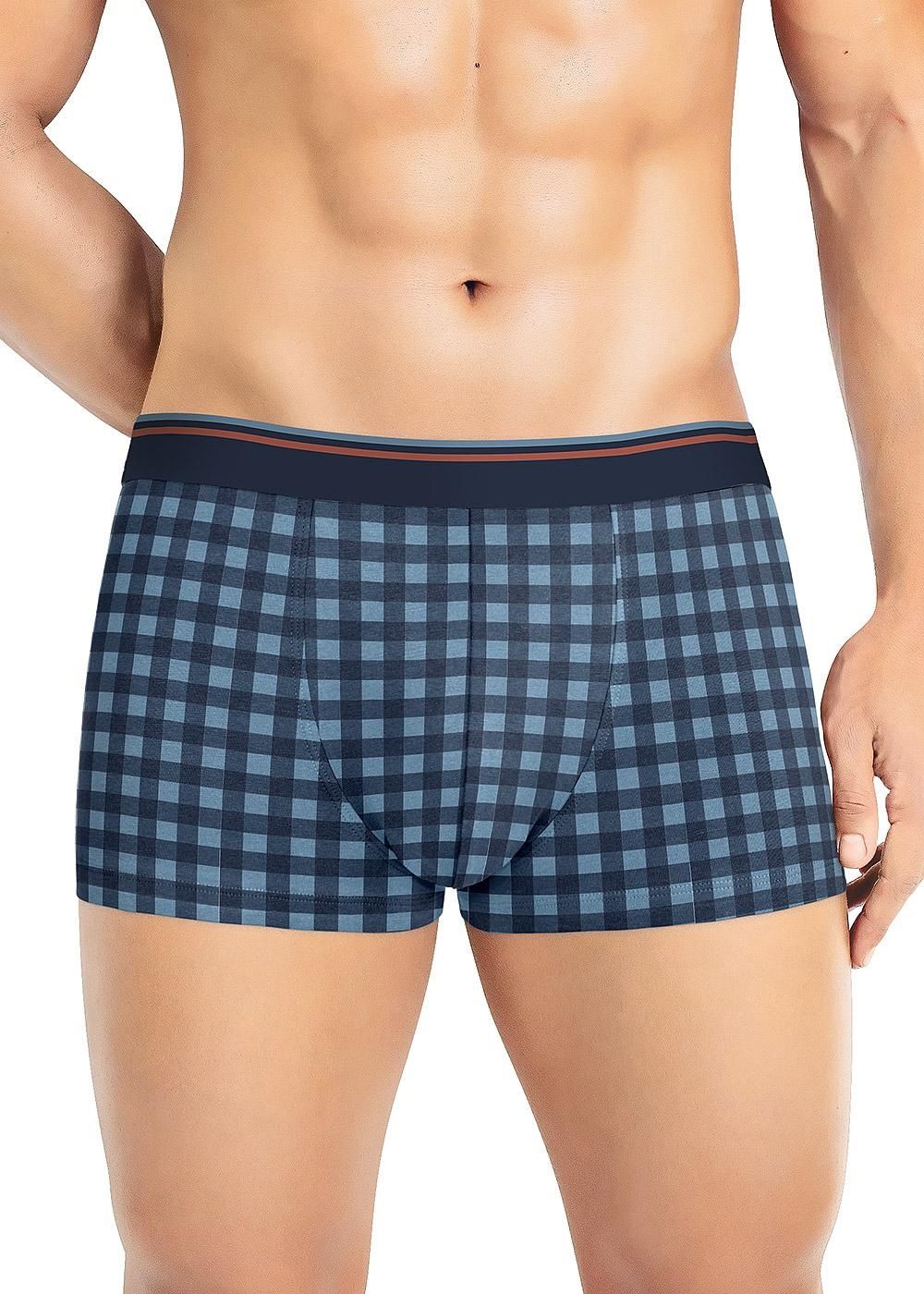 Шорты удлиненные комфортной посадки выполнены из оригинального полотна в крупную клетку. Трусы дополнены фирменным жаккардовым логотипом.