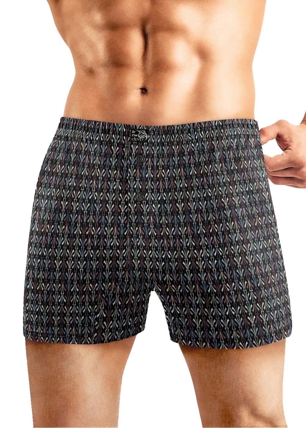 Шорты средней длины комфортной посадки из полотна в стильную набивку. Трусы дополнены жаккардовой резинкой.