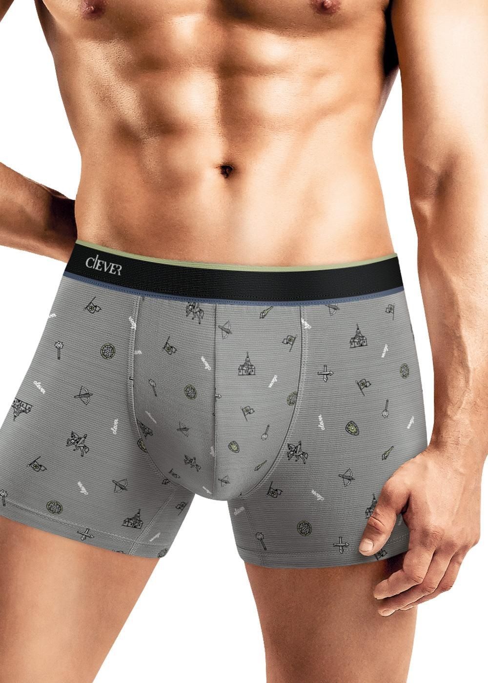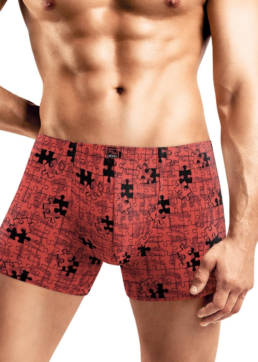 Шорты удлиненные комфортной посадки выполнены из оригинального полотна в имиджевую набивку "пазлы". Трусы дополнены имиджевой жаккардовой резинкой.