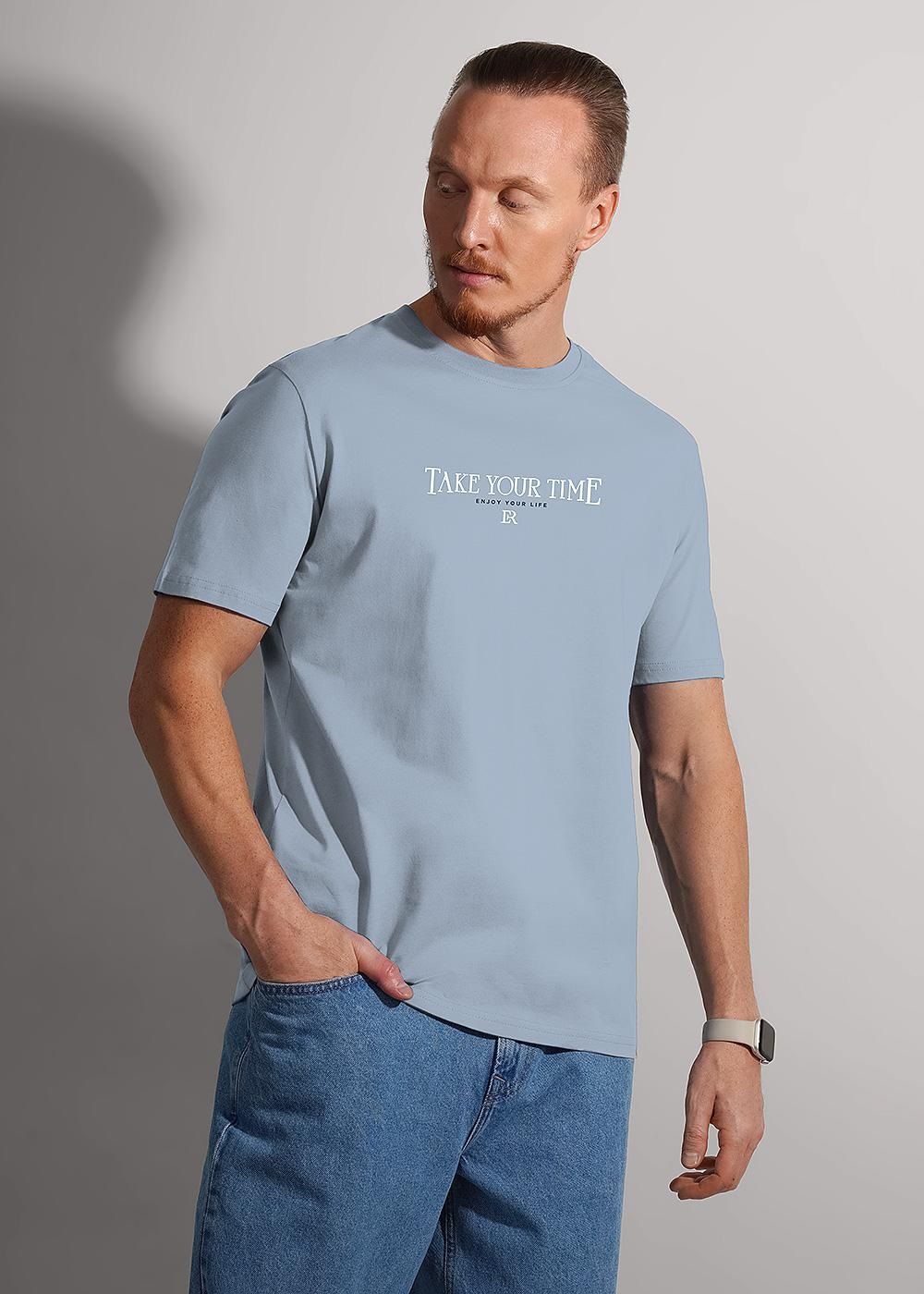 Мужская футболка из дышащего трикотажного хлопкового полотна. Модель дополнена авторским шрифтовым принтом. Отличный вариант для динамичных мужчин.