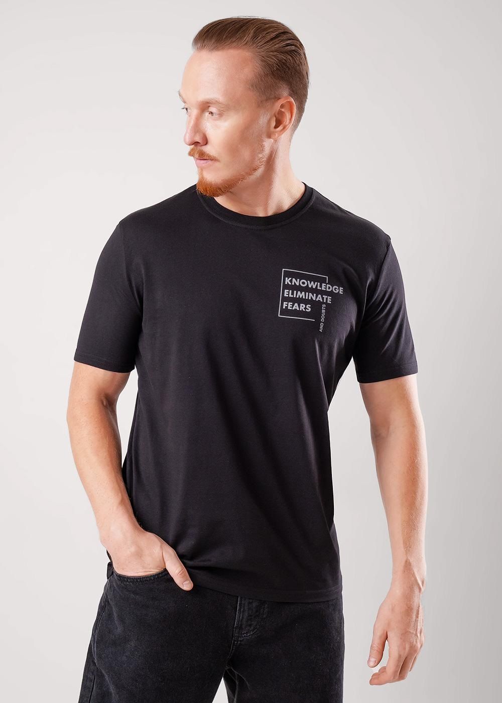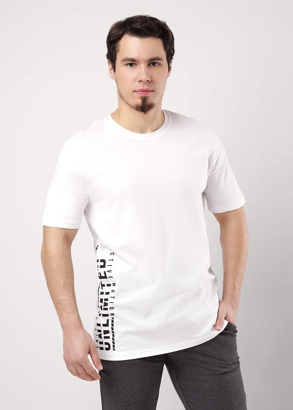 Футболка свободного кроя с круглым вырезом горловины и коротким рукавом. Модель выполнена из трикотажного хлопкового полотна. Изделие дополнено дизайнерским принтом и имиджевой фурнитурой. Универсальная вещь мужского гардероба на каждый день.