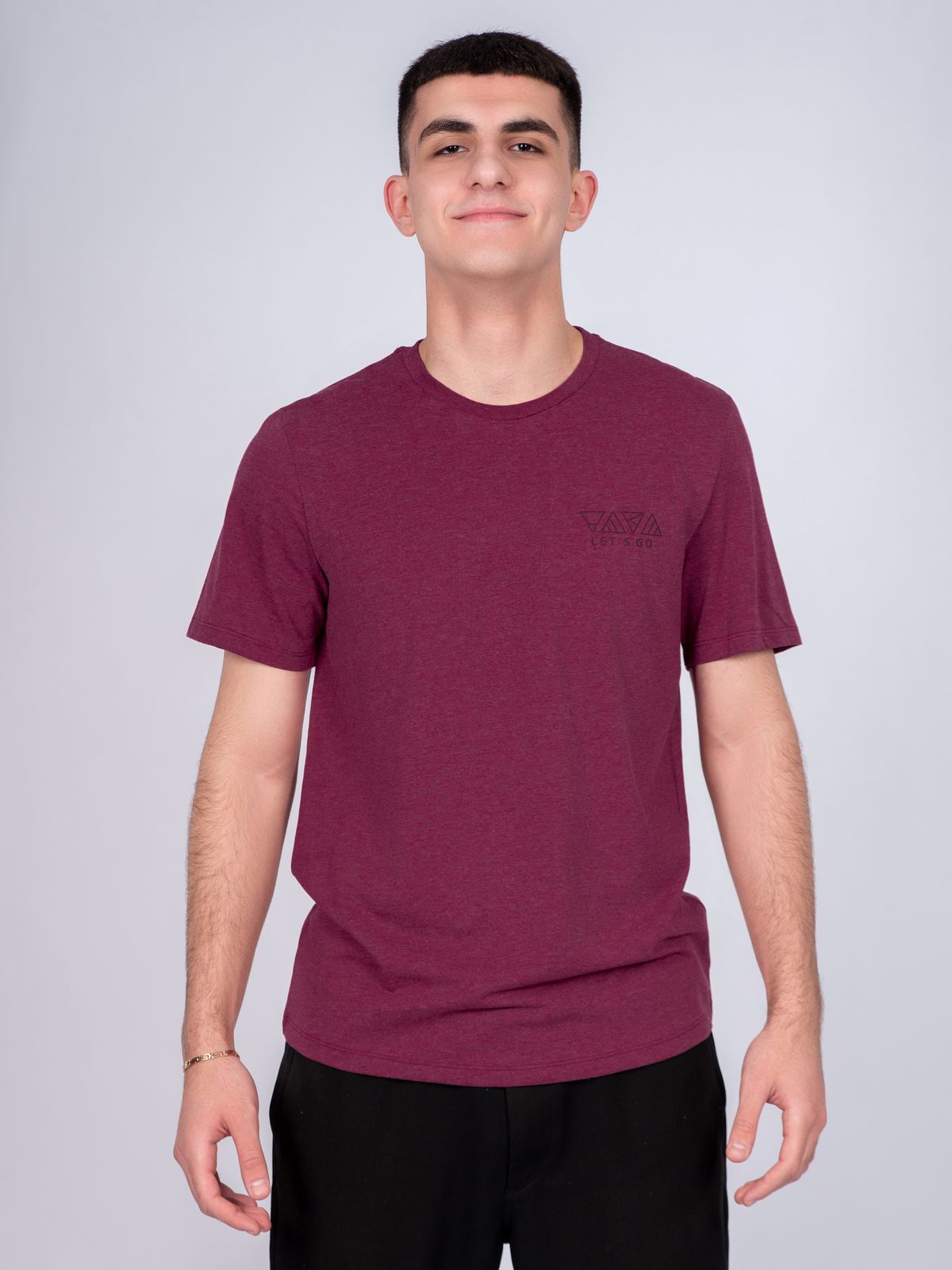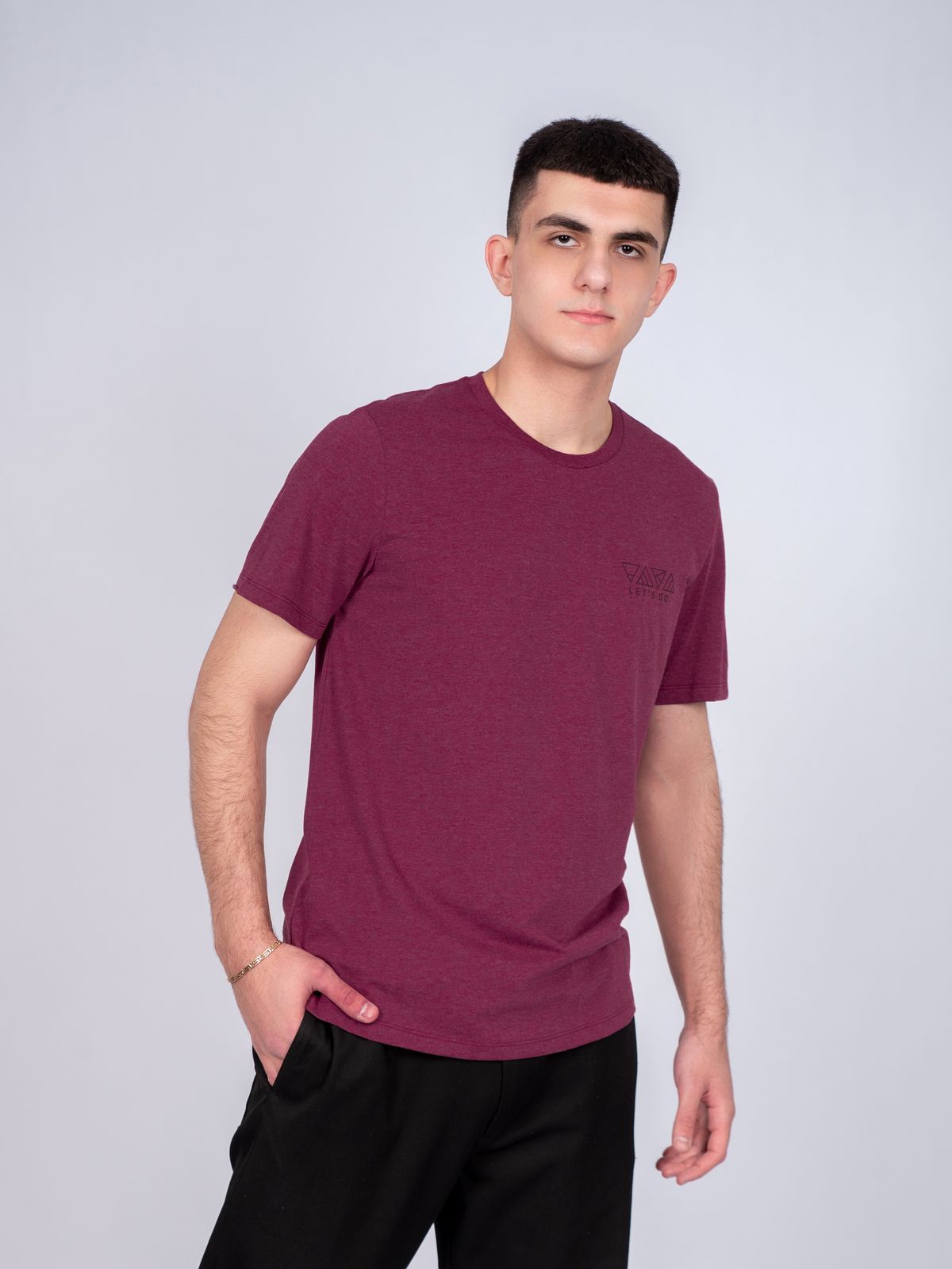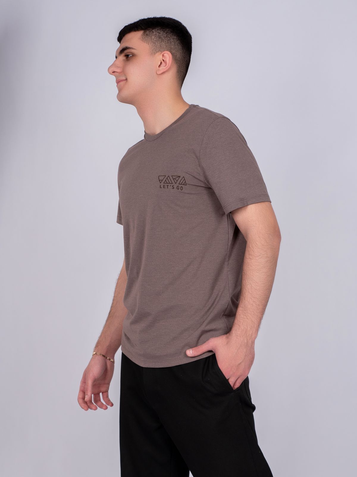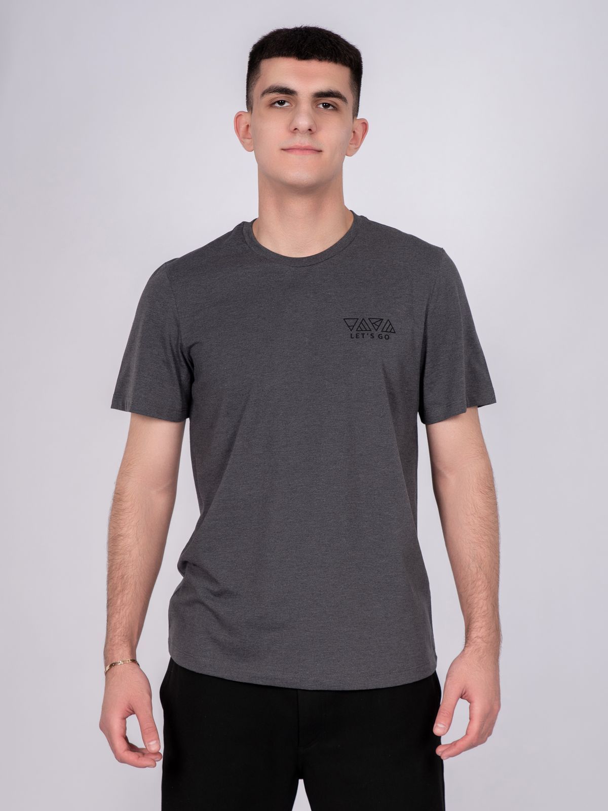 Футболка с круглой горловиной из фактурного полотна. Изделие дополняет имиджевый принт инжексион. Данная модель прекрасно впишется в любой гардероб и составит образ с брюками или джинсами.