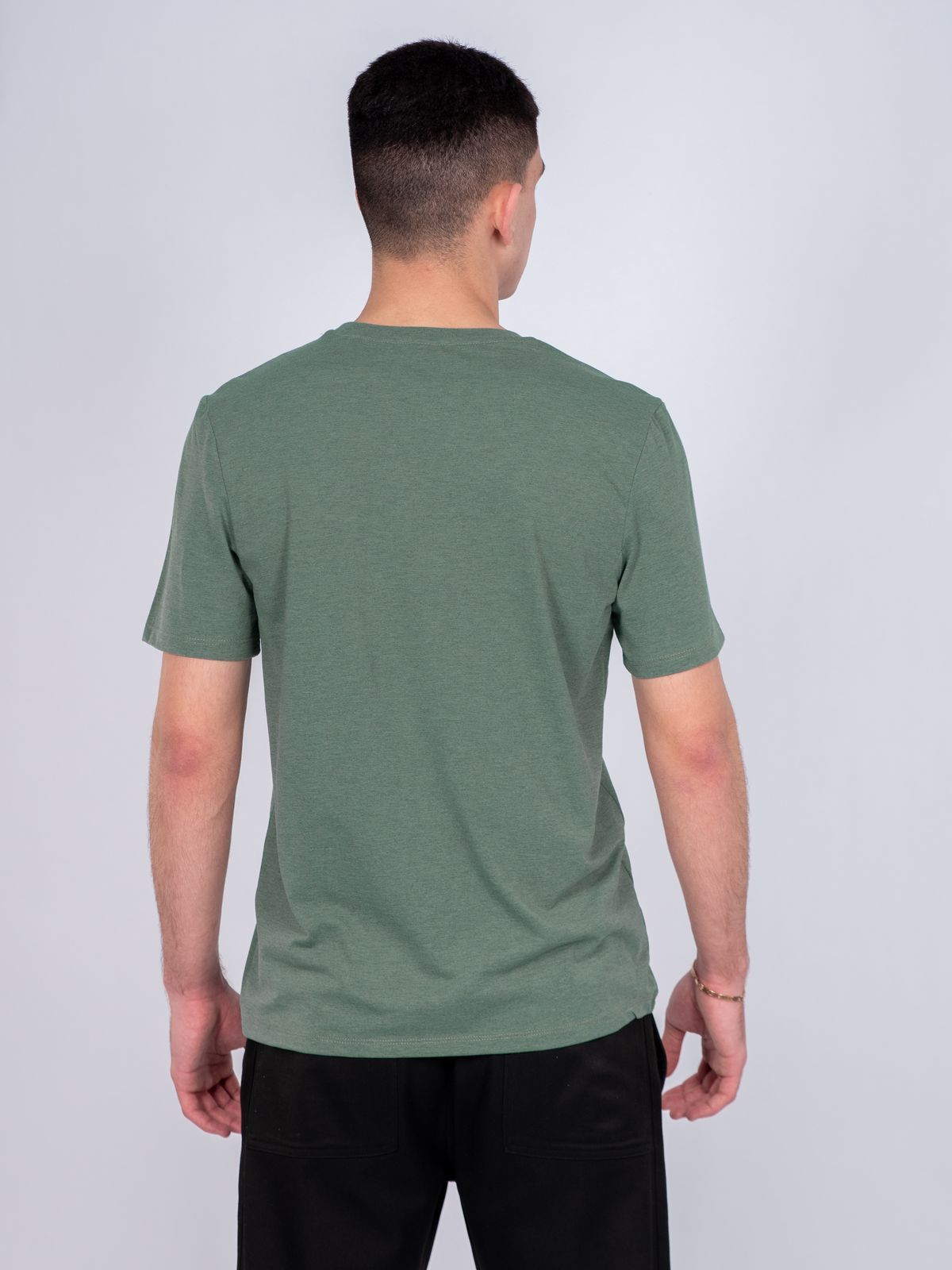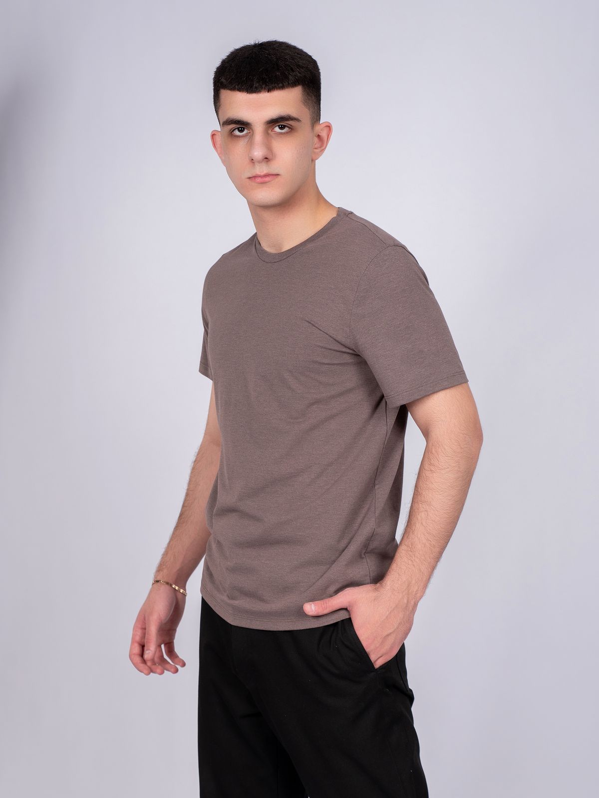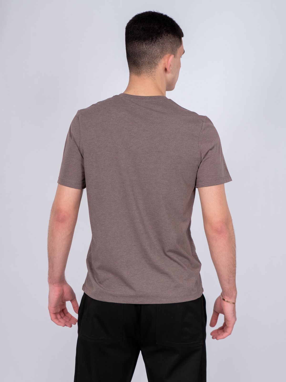 Футболка мужская из кулирки. Горловина обработана рибаной. Росток спинки обработан бейкой из кулирки. Рукав втачной, короткий. Модель рассчитана на рост 176-182.