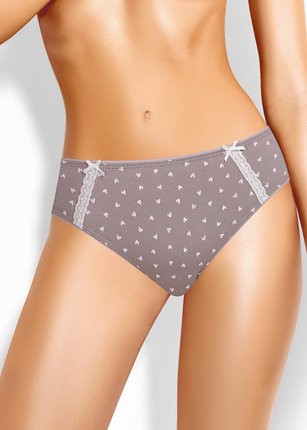 Трусы слипы женские из эластичного хлопкового полотна. Обработка краев по талии резинка с кантом, по ноге - полуокантовка. Боковые кружевные вставки. По переду два атласных банта.