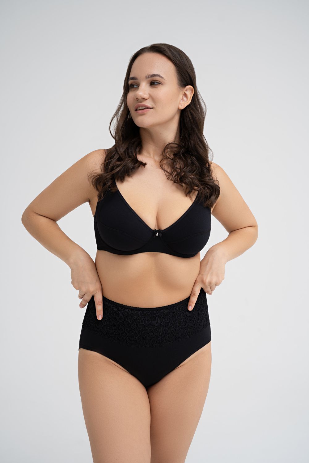 Трусы макси из высококачественного хлопка с эластаном декорированы широким кружевом по поясу изделия. Трусы имеют высокую посадку и широкие боковые детали, максимально закрывающие ягодицы.