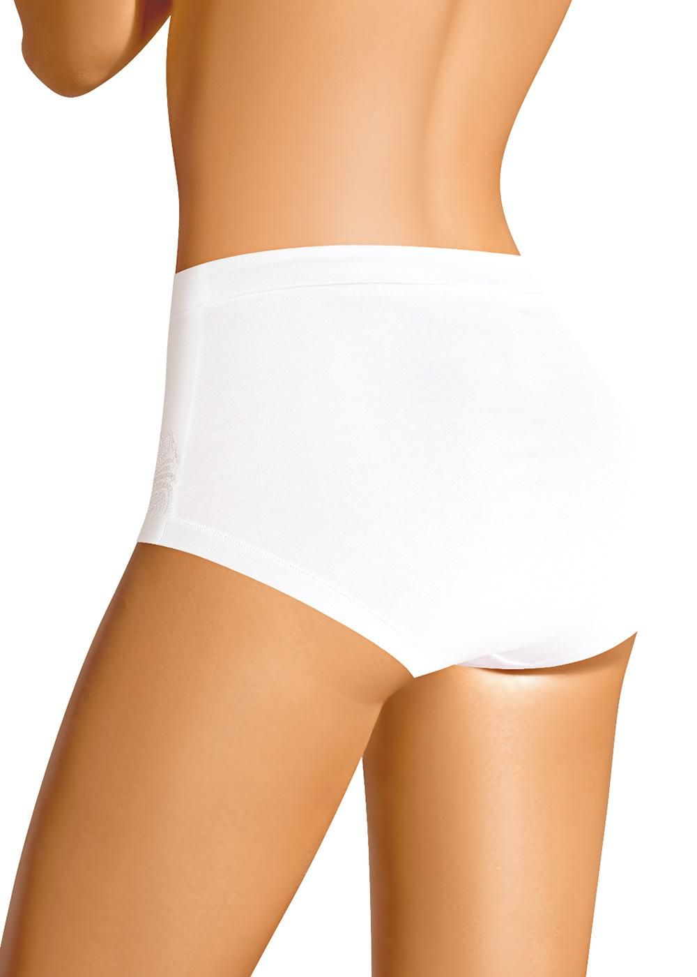 Трусы макси женские из плотного эластичного хлопкового полотна. Обработка краев - ажурная резинка с фестоном.
