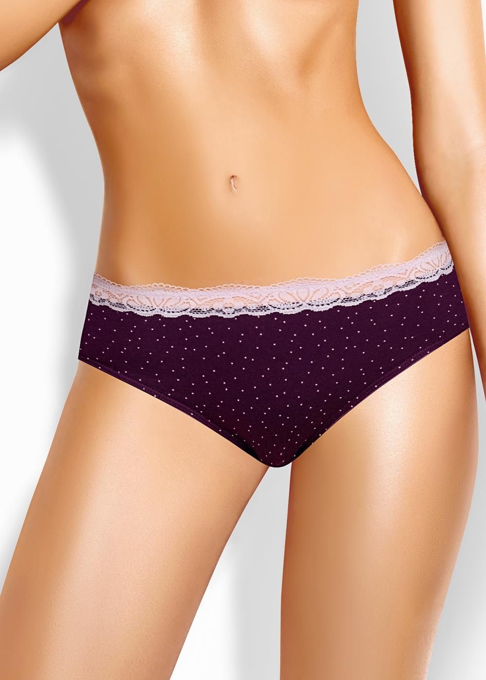 Трусы бикини женские из эластичного хлопкового полотна. По переду рез с кружевными боковыми вставками. Обработка краев по талии ажурная резинка (точечный зигзаг).