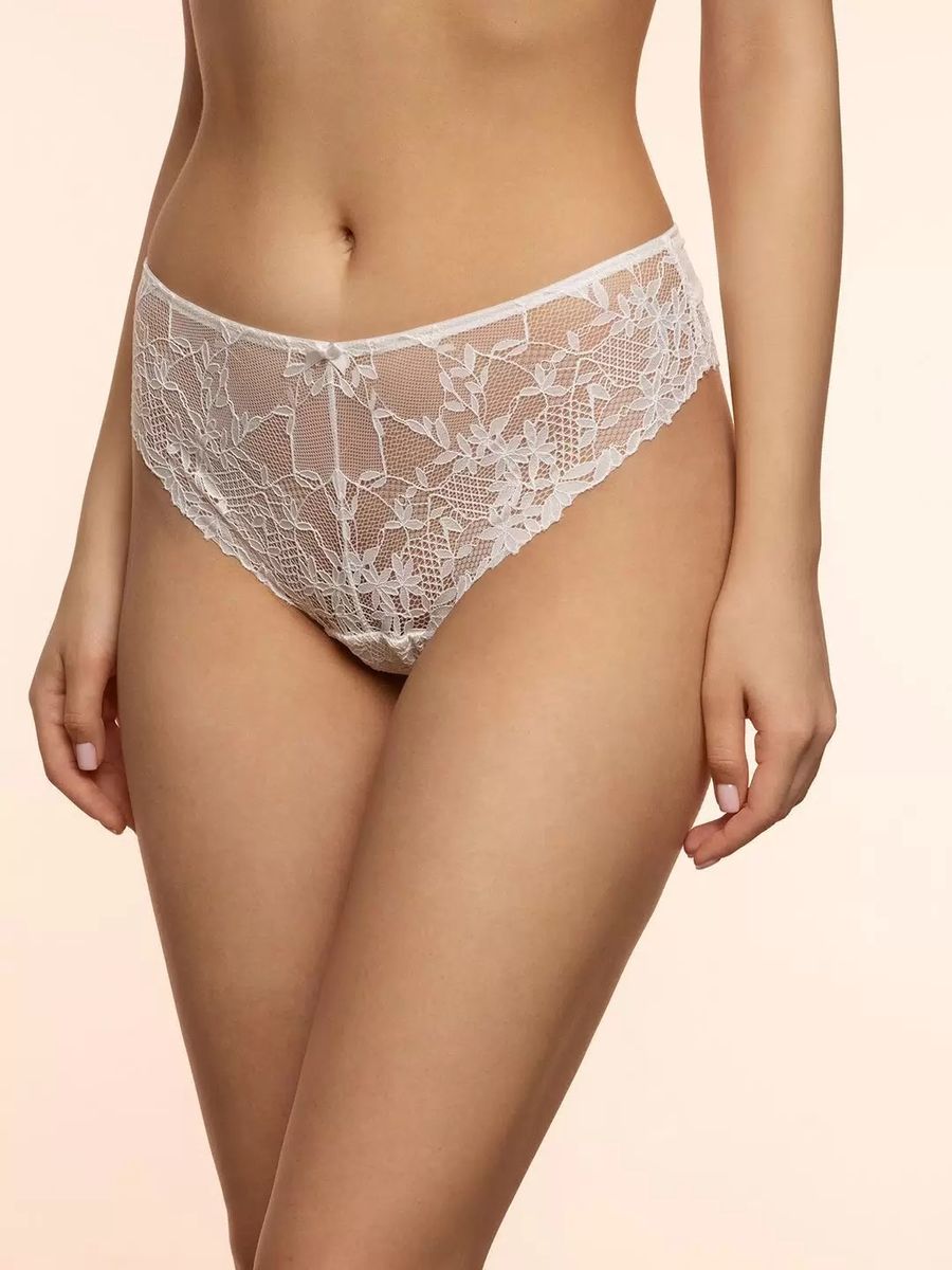 Состав: 72% полиамид, 16% эластан, 12% полиэстер. Трусы слипы высокой посадки из микрофибры с кружевом.