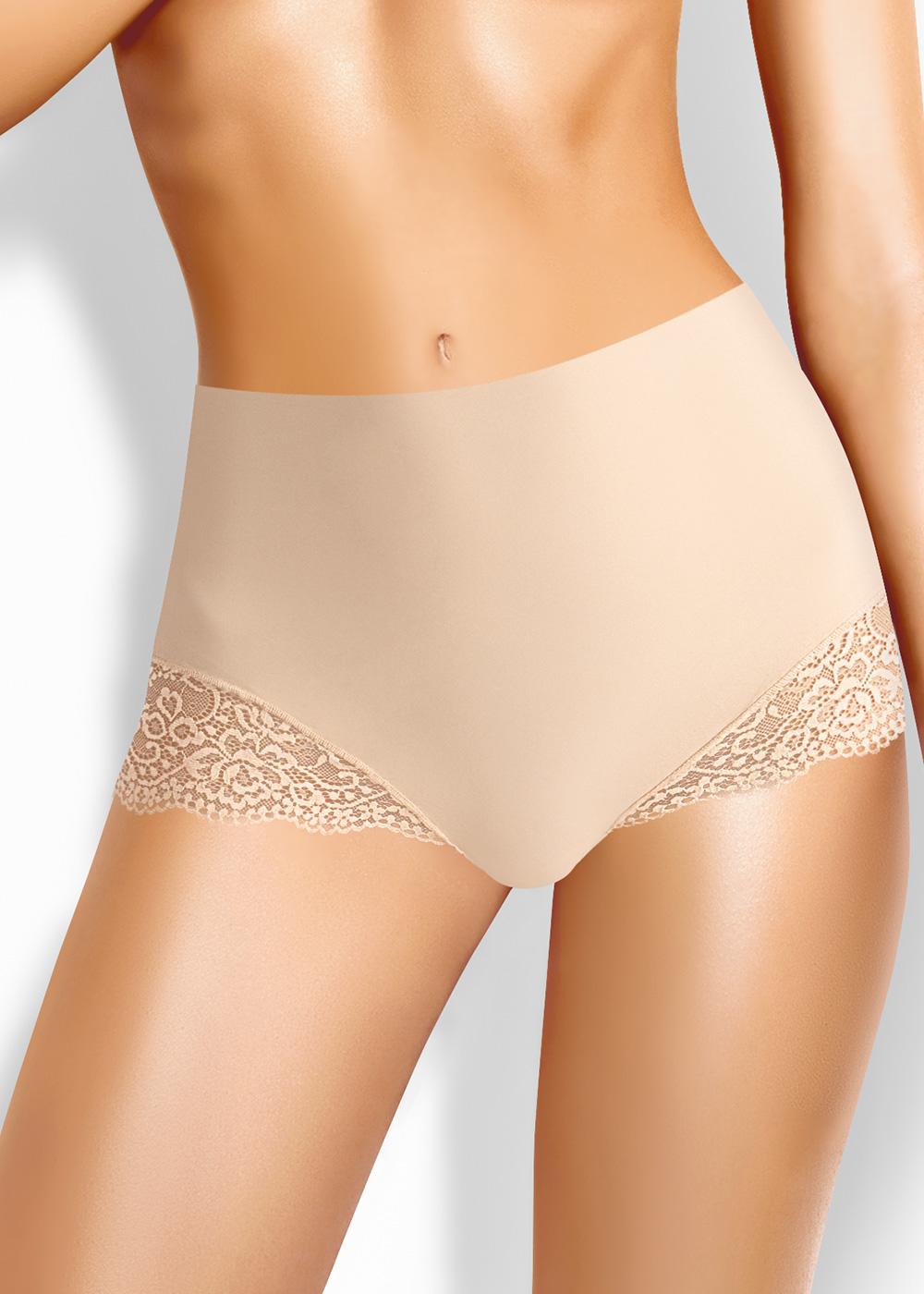 Трусы макси женские из полиамида с эластаном. Обработка краев по талии - подклееный край, по ноге - широкое кружево. Хлопковая ластовица.