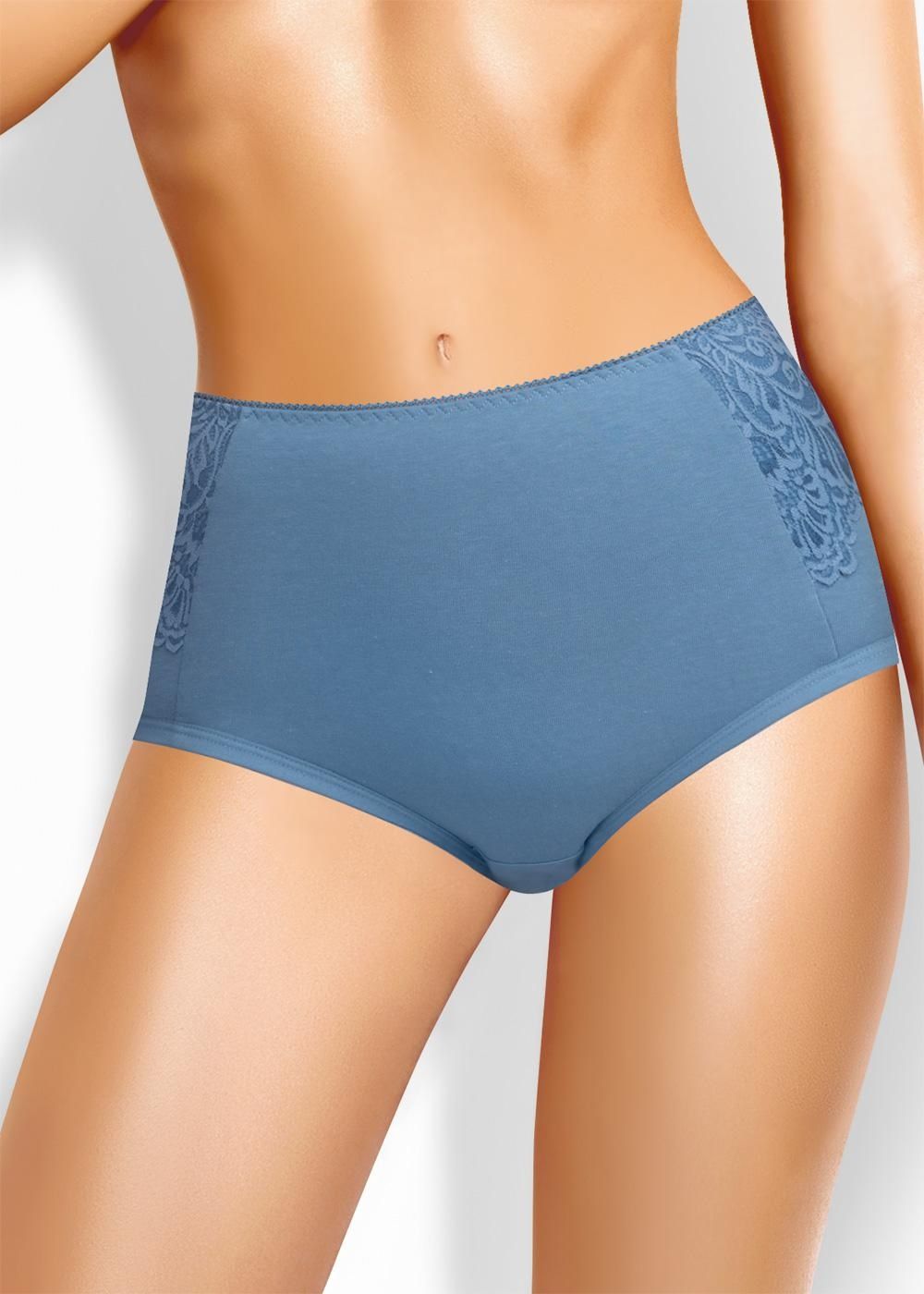 Трусы макси утяжка женские из плотного эластичного хлопкового полотна. По переду отделка кружевом и двойной слой основного полотна. Обработка краев по талии - ажурной резинкой с фестоном, по ноге - окантовкой.