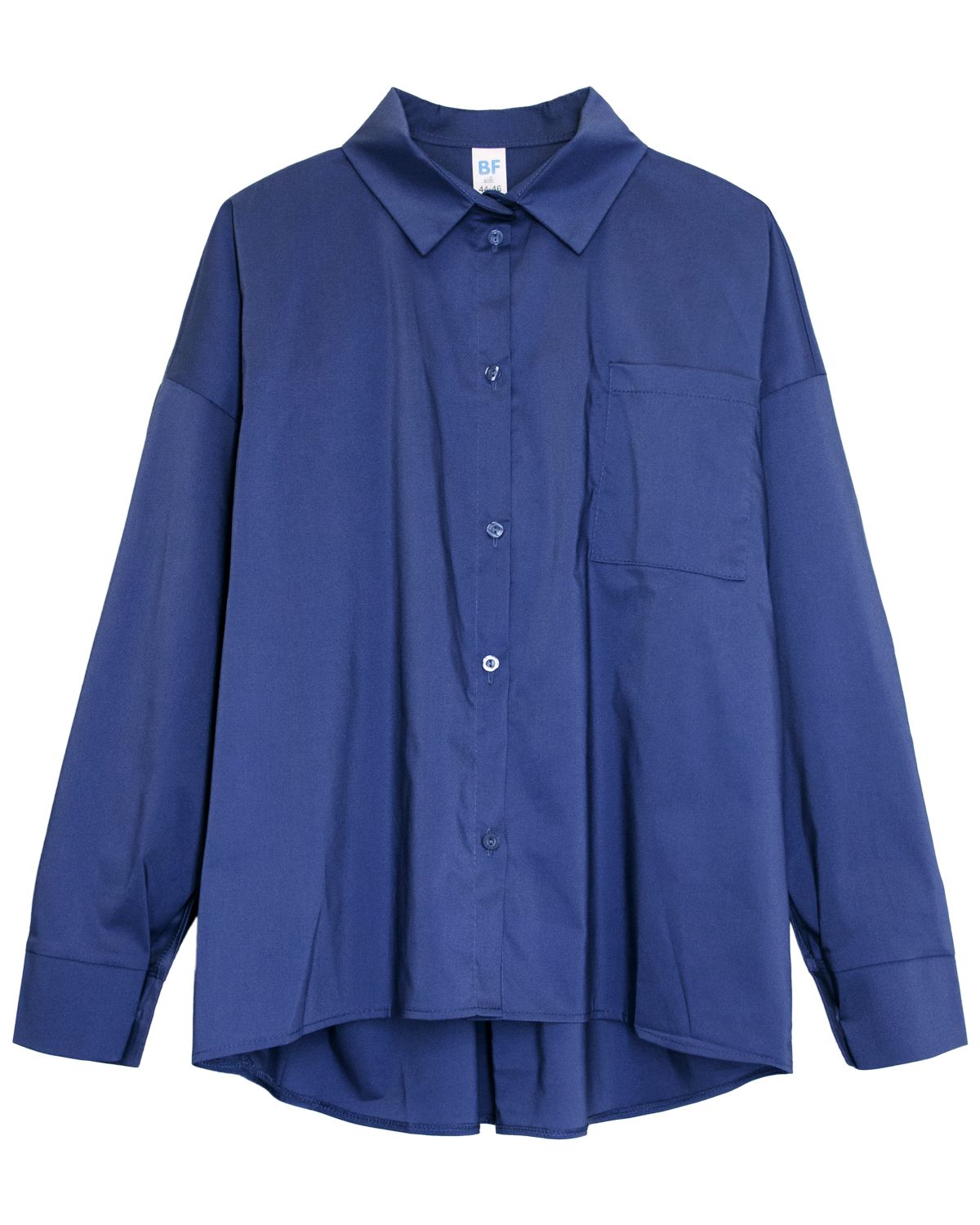 Блузка женская свободного кроя оверсайз со спущенным рукавом, с отложным воротником. На полочке застежка на пуговицы, рукав заканчивается манжетой. Спинка удлиненная с отрезной кокеткой и встречной складкой для свободы движения. Модель рассчитана на рост 164-170.