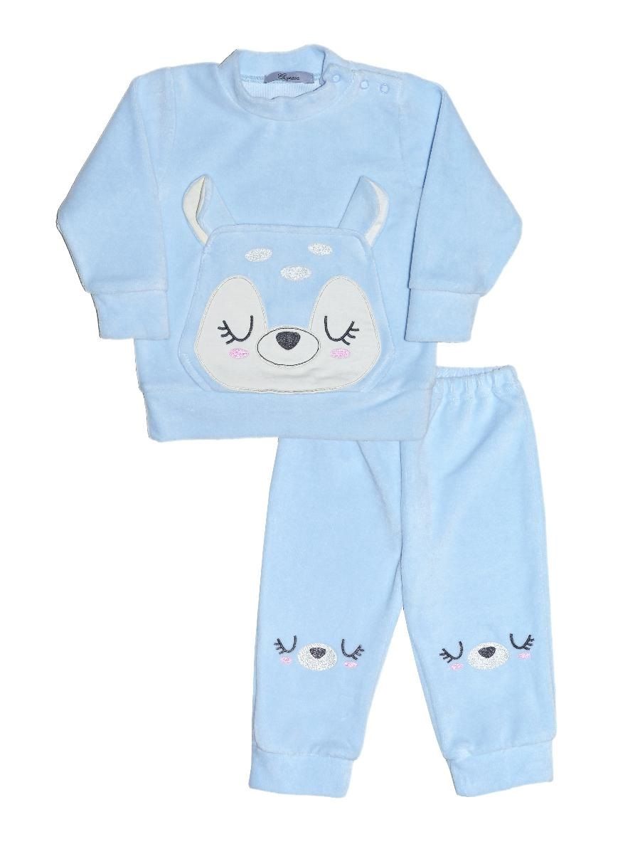 Пижама для девочки, состоящая из джемпера и брюк. Джемпер прямого силуэта, с втачным длинным рукавом. Горловина круглая обработана обтачкой из рибаны. По низу рукавов манжеты из рибаны. Низ изделия обработан швом вподгибку. На полочке принт Шелкография. Надпись переводится как "Красивая, милая". Брюки прямого силуэта, из однотонного полотна. Пояс цельнокроенный, с эластичной тесьмой внутри. По низу изделия манжеты из рибаны.
