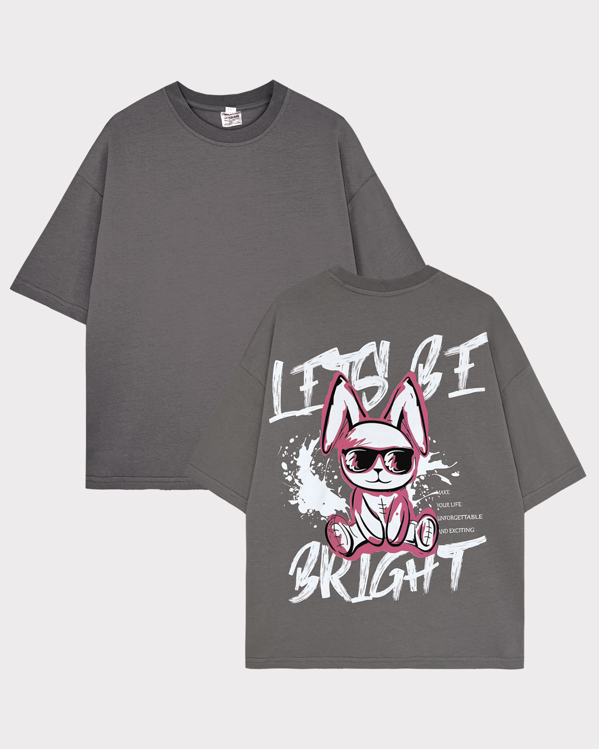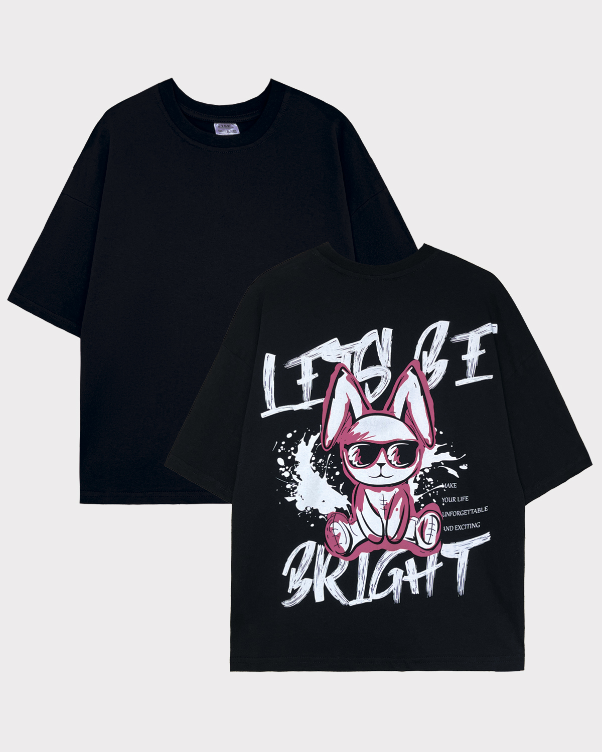 Футболка детская свободного силуэта (оверсайз) с коротким рукавом. Горловина круглая, обработана обтачкой горловиной из рибаны. Низ изделия и рукава обработаны швом вподгибку. На спинке принт Шелкография. Надпись преводится как "Давай будь яркой;Делай свою жизнь незабываемой и увлекательной".