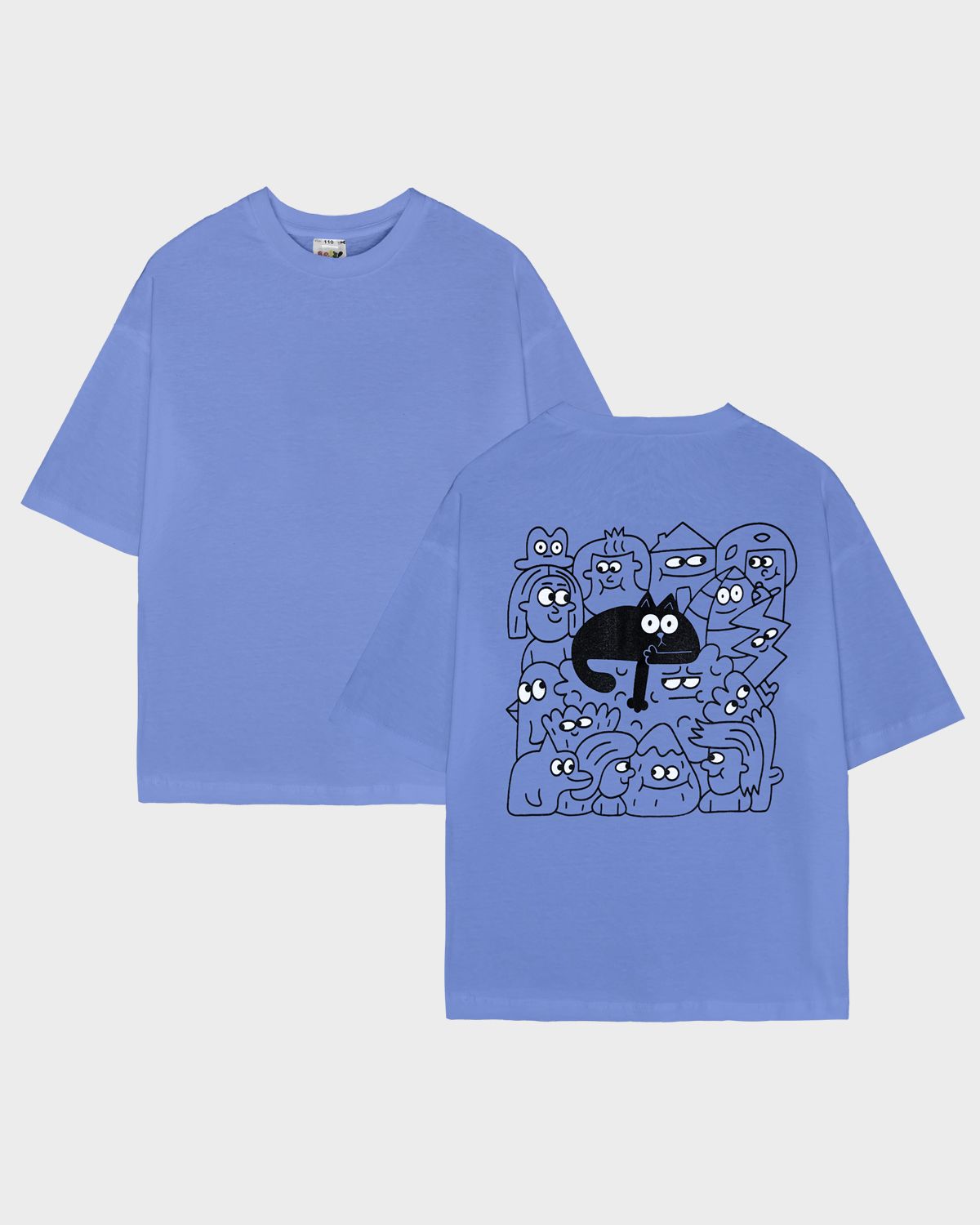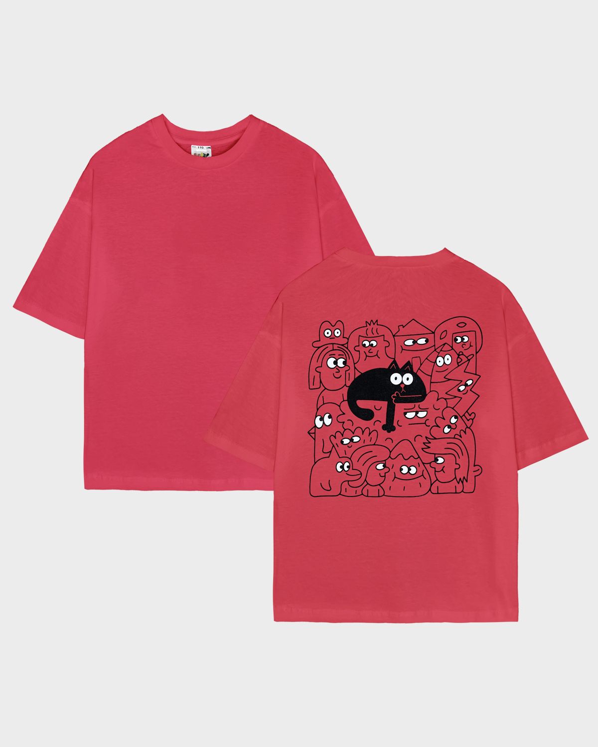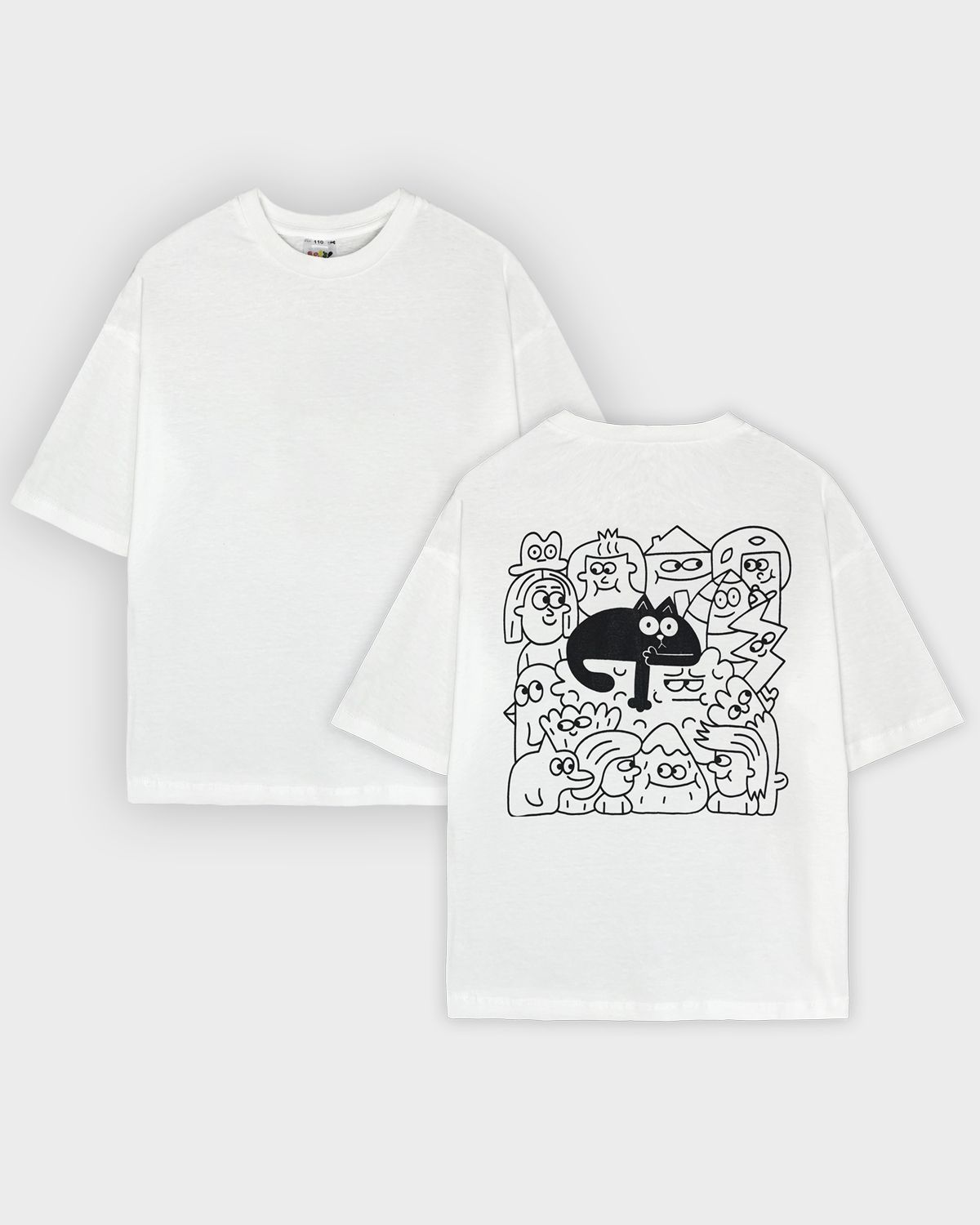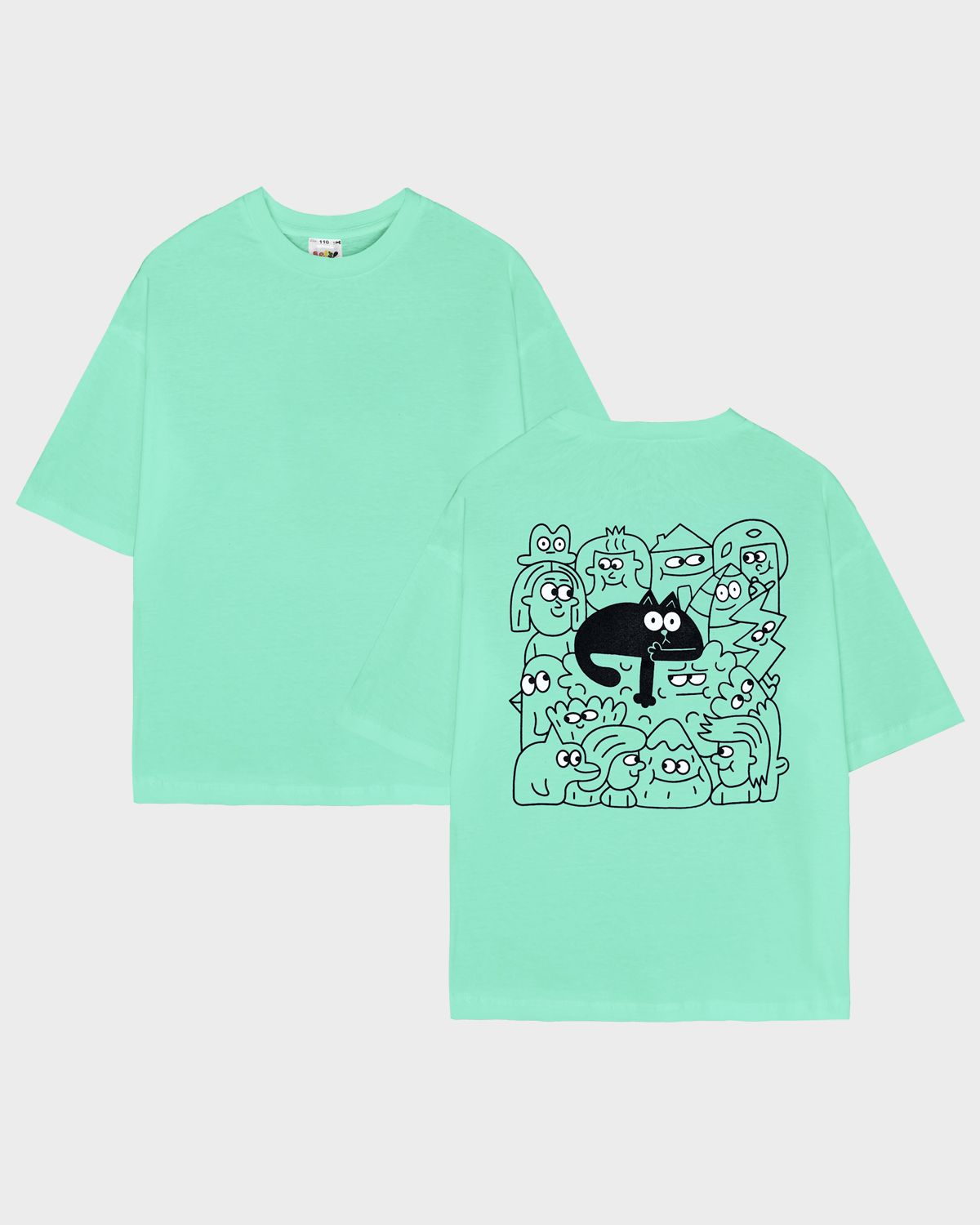 Футболка детская свободного силуэта (оверсайз) с коротким рукавом. Горловина круглая, обработана обтачкой из рибаны. Низ изделия и рукава обработаны швом вподгибку. На спинке принт Шелкография. Надпись переводится как "Удача следует за тобой".