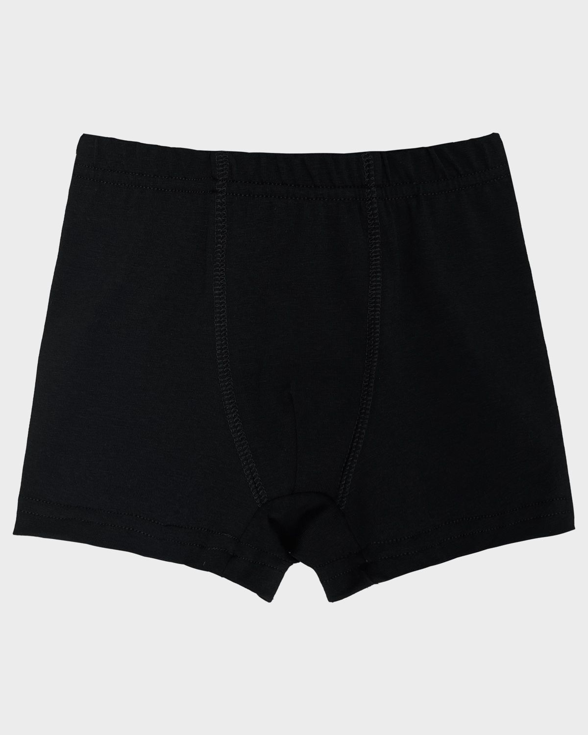 Трусы-боксеры из кулирки для мальчика прямого силуэта. Пояс цельнокроенный с эластичной тесьмой, закрепленной в шов. На гульфике присутствует вытачка. Шаговый шов и гульфик, отстрочен 4-ниточным застилом. Низ штанин обработан швом в подгибку.