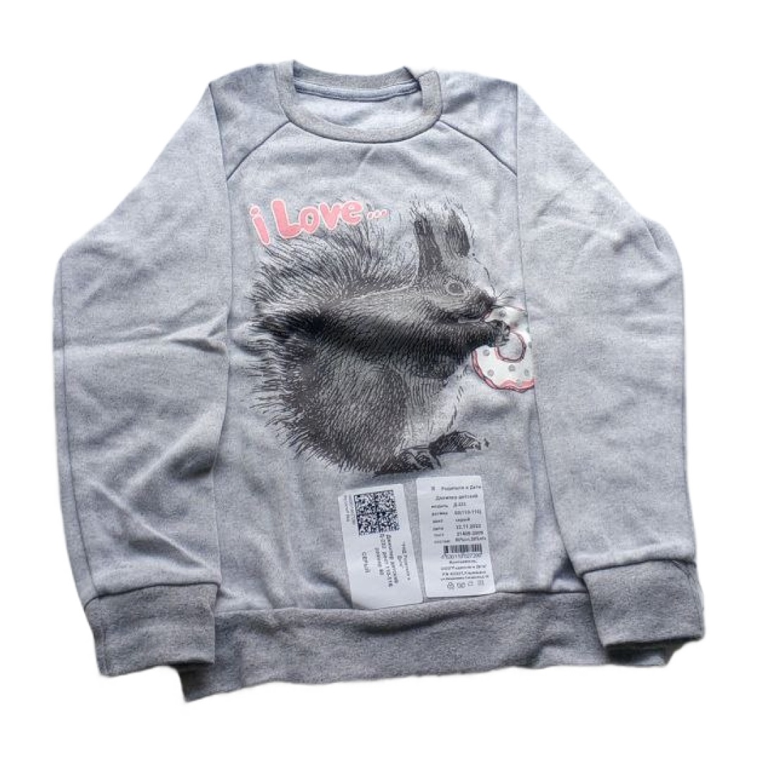 Футболка детская прямого силуэта, крой оверсайз с втачным коротким рукавом. Горловина круглая, обработана воротником из кулирки, в цвет изделия. Горловина спинки внутри обработана настрочной планкой из киперной ленты. Низ рукавов обработан швом вподгибку. На передней полочке принт