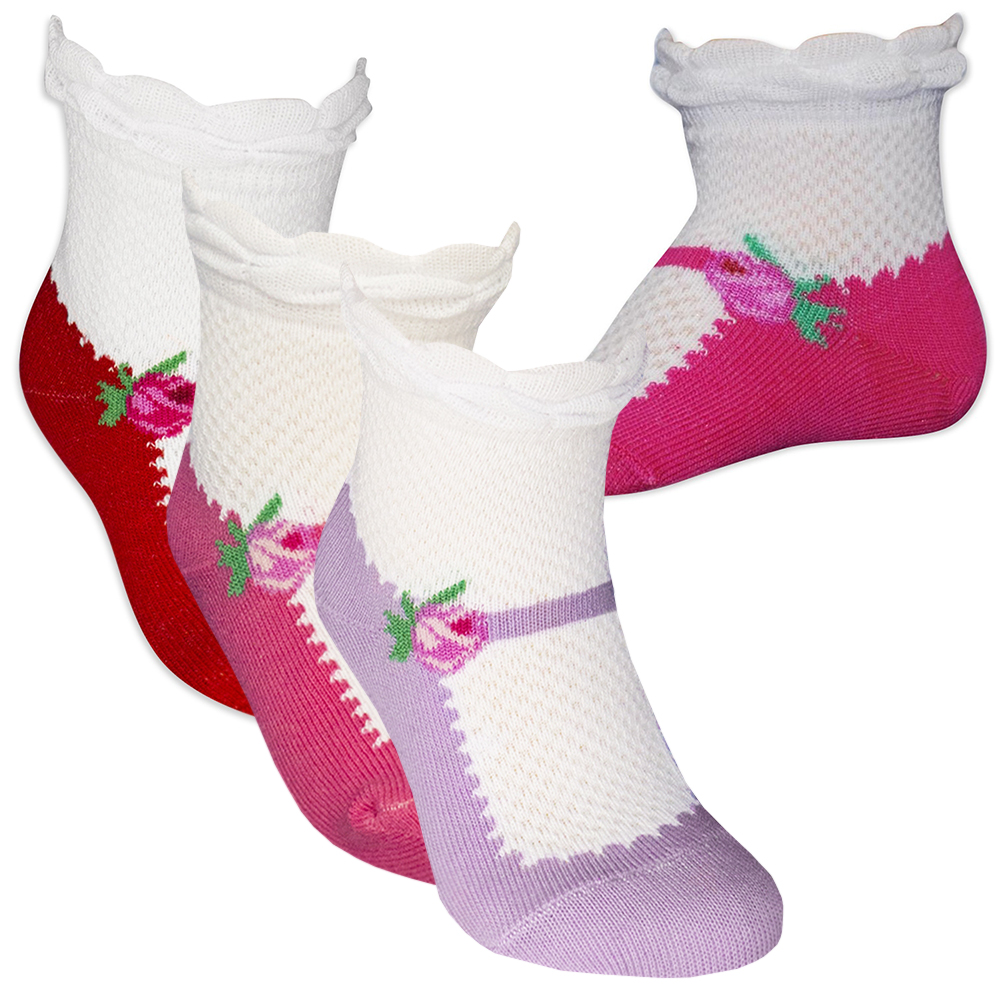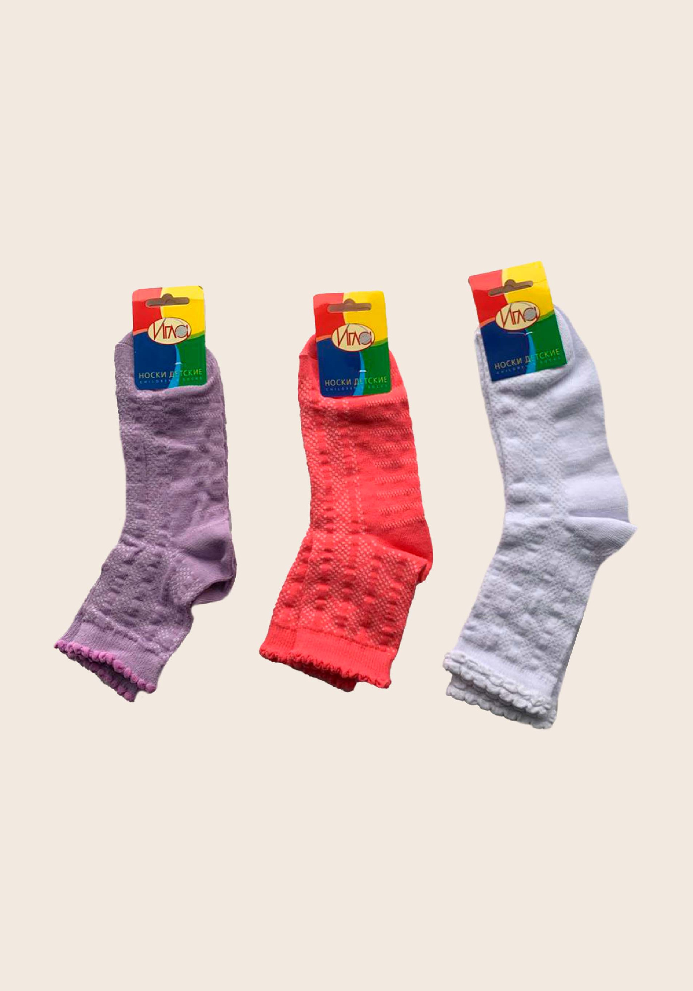 Детские носки из хлопка, с пришитой к борту кружевной лентой, однотонные. Для девочек.