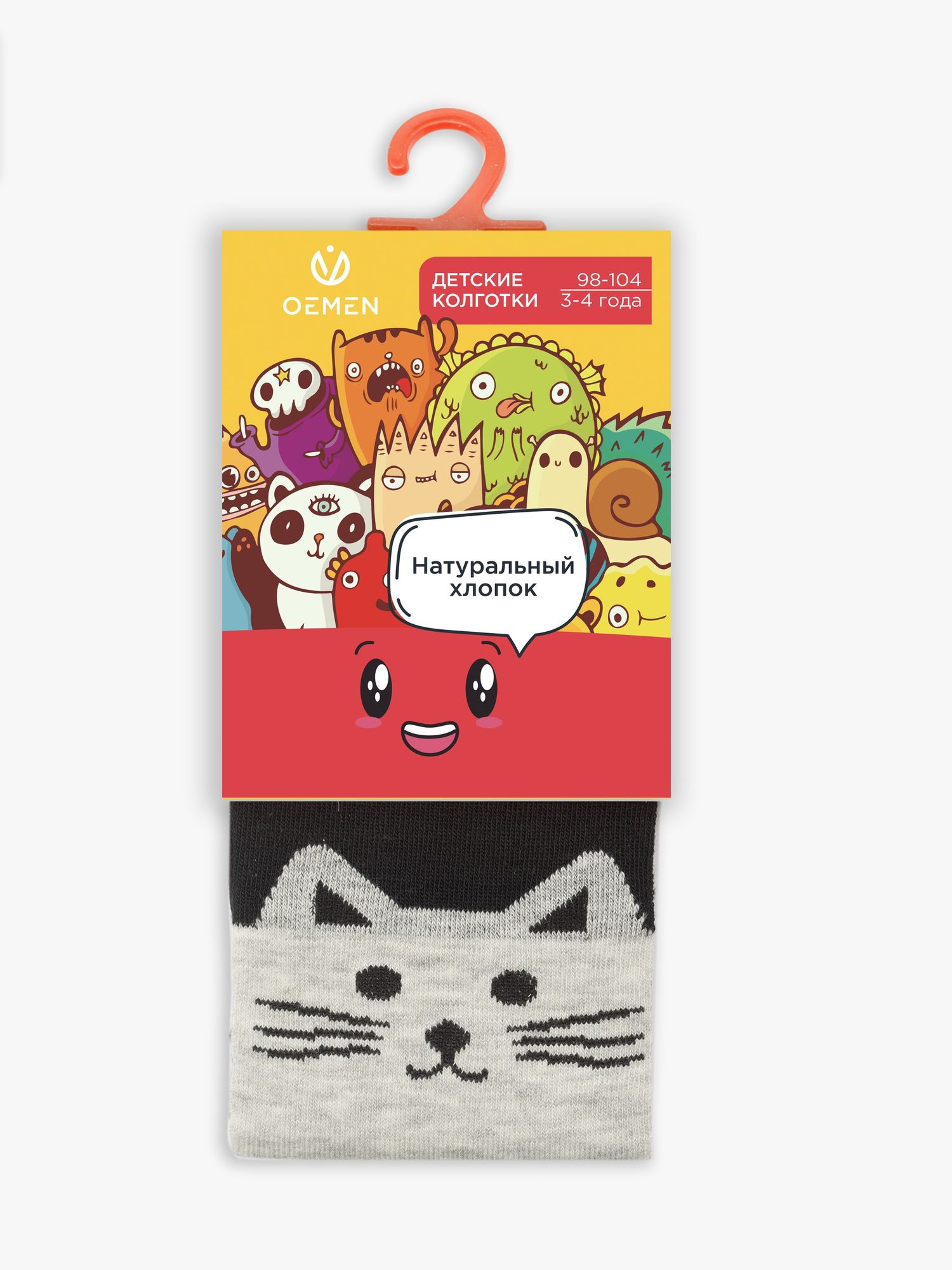 Хлопковые колготки с удобной усиленной резинкой. Принт в виде мордочки котика