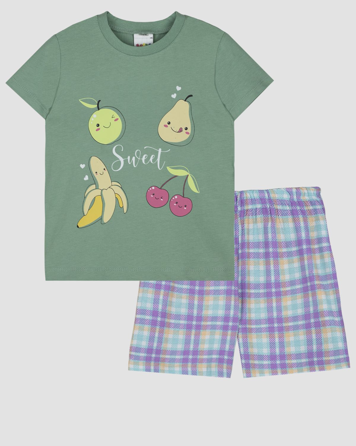 Пижама для девочки (футболка+шорты) Зеленый Let's go Хлопок 91265 купить оптом в brandom.shop