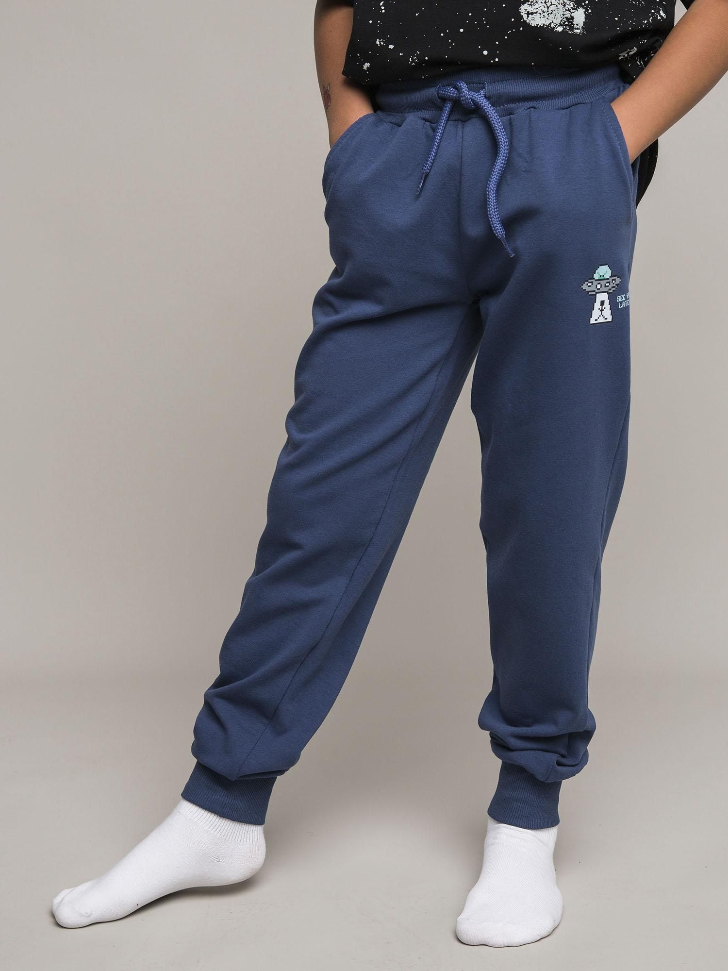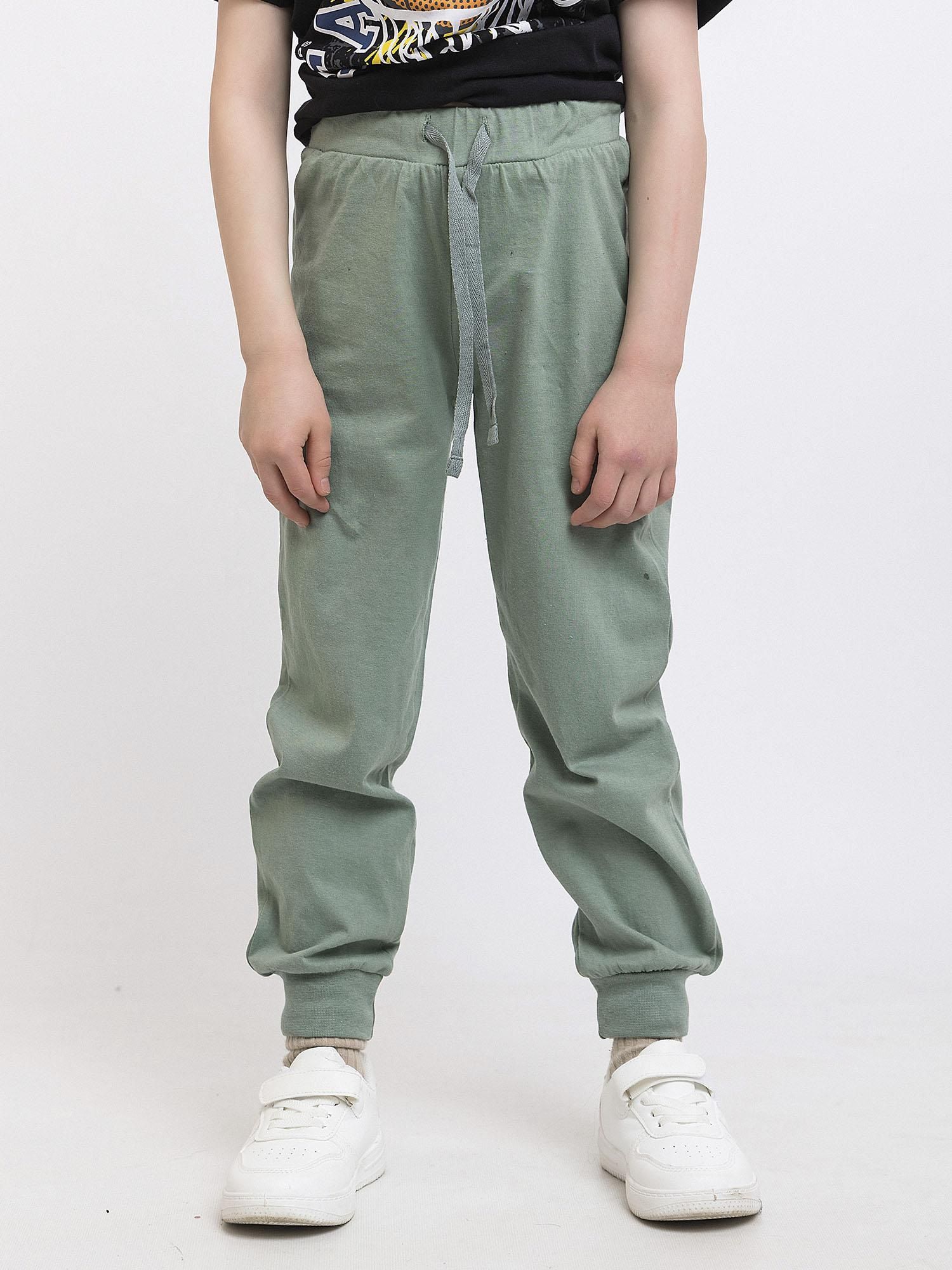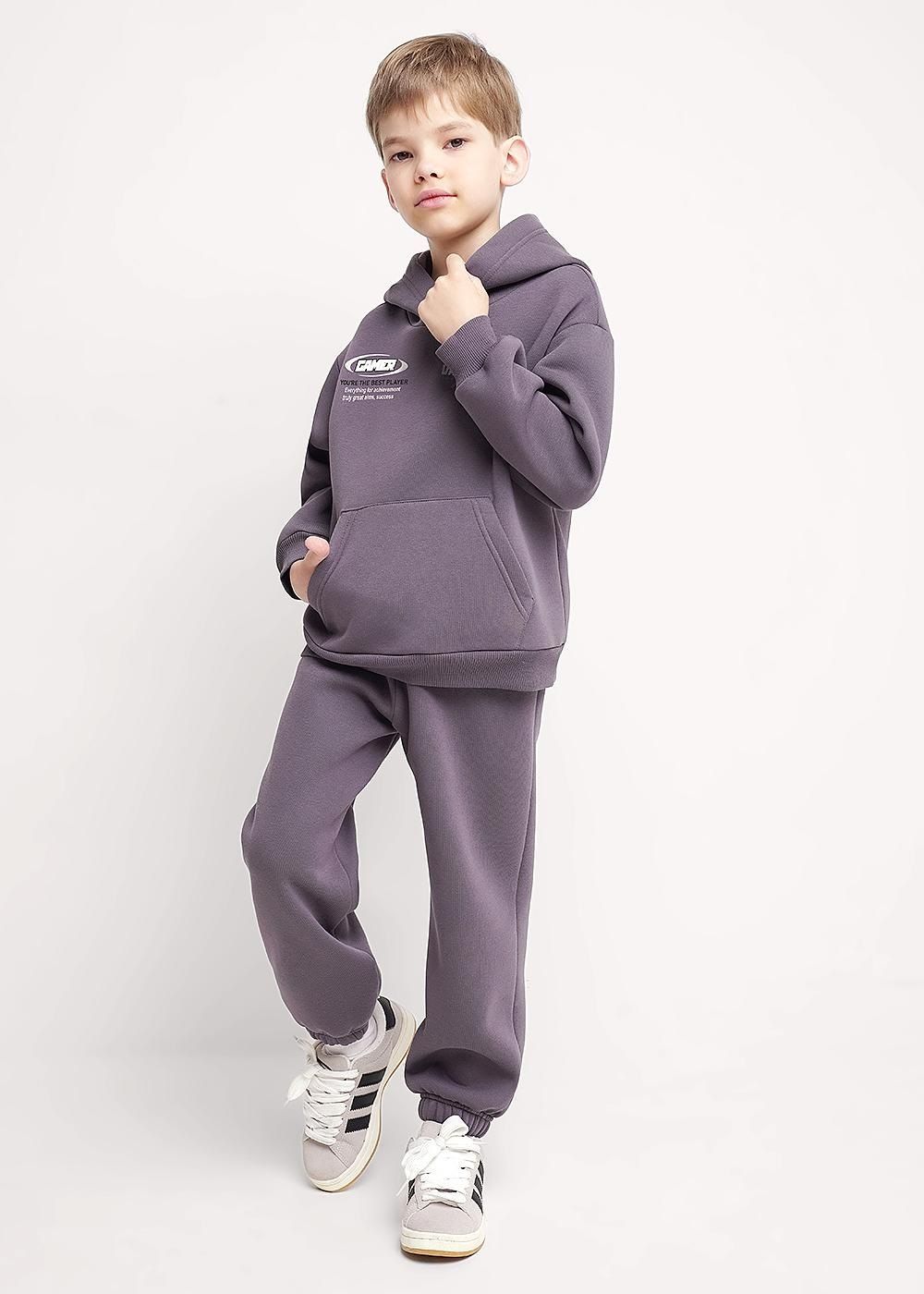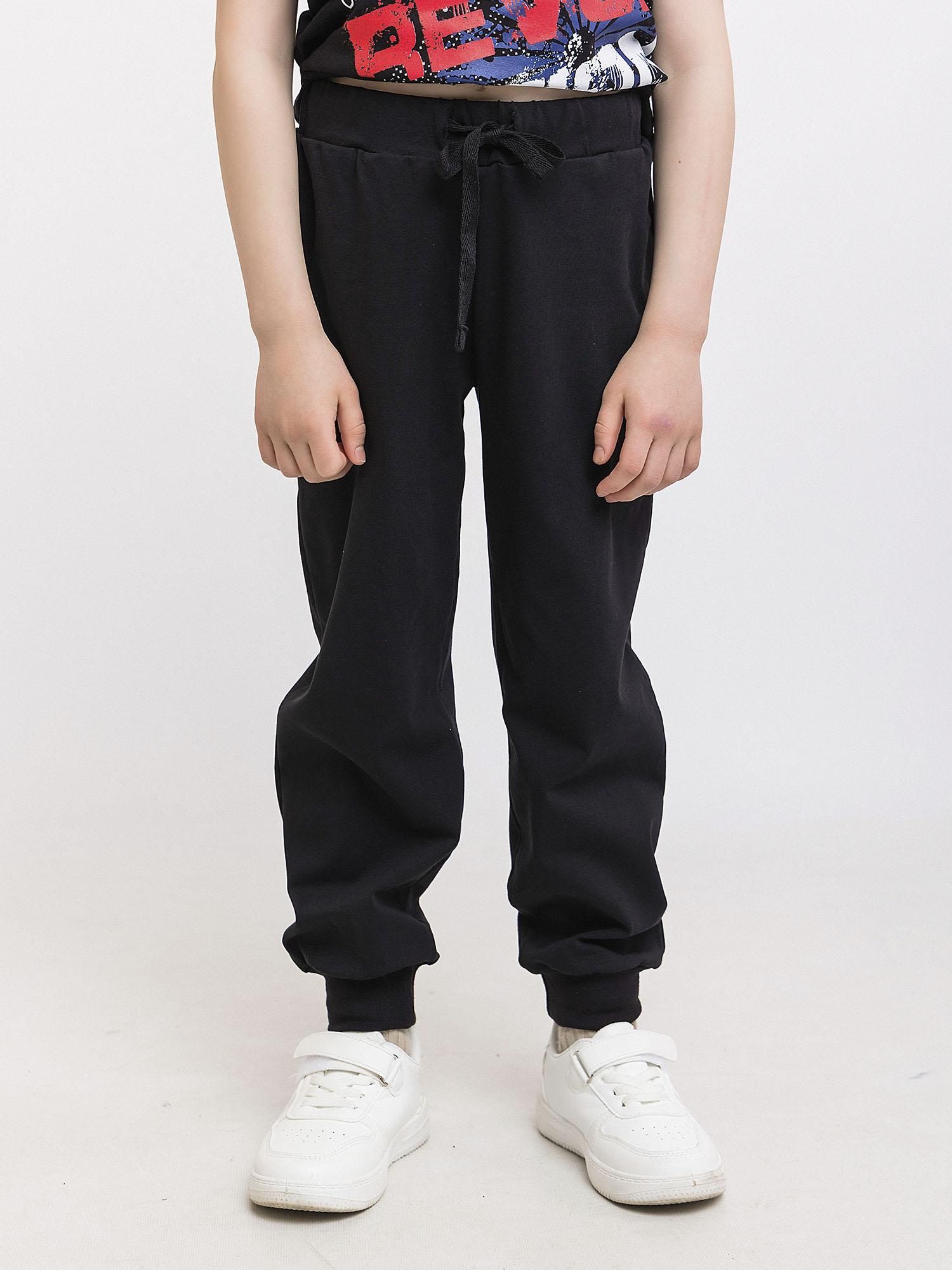 Трикотажные брюки для мальчика из петельчатого футера. Эластичный пояс на резинке регулируется по ширине с помощью шнурка, по бокам два удобных кармана, внизу эластичные манжеты.