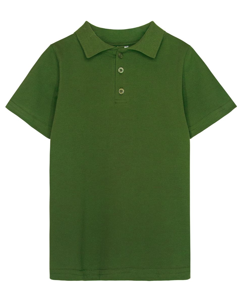 Футболка для мальчика прямого покроя с втачным коротким рукавом из однотонного полотна. Горловина круглая, обработана классическим отложным воротником из вязаного полотна. На полочке планка в цвет Футболки, проклеена дублерином на трикотажной основе. На планке 3 пришивные пуговицы в цвет полоски на воротнике.