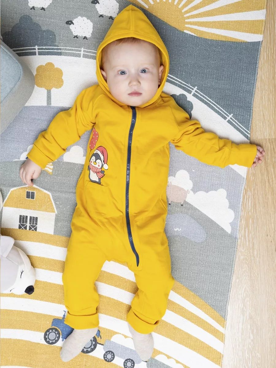 Комбинезон из футера на замке, с капюшоном. Длинный рукав, манжеты на рукавах и штанишках