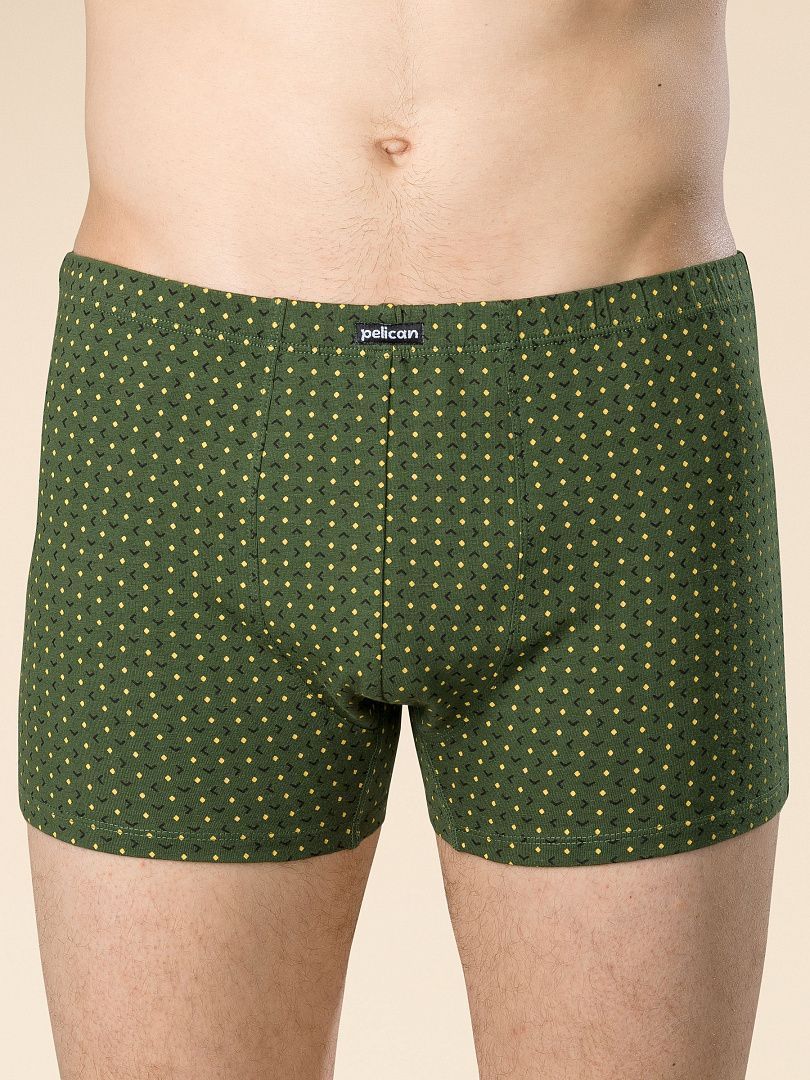 Шорты удлиненные комфортной посадки выполнены из оригинального полотна в мелкую графику. Трусы дополнены имиджевой жаккардовой резинкой.