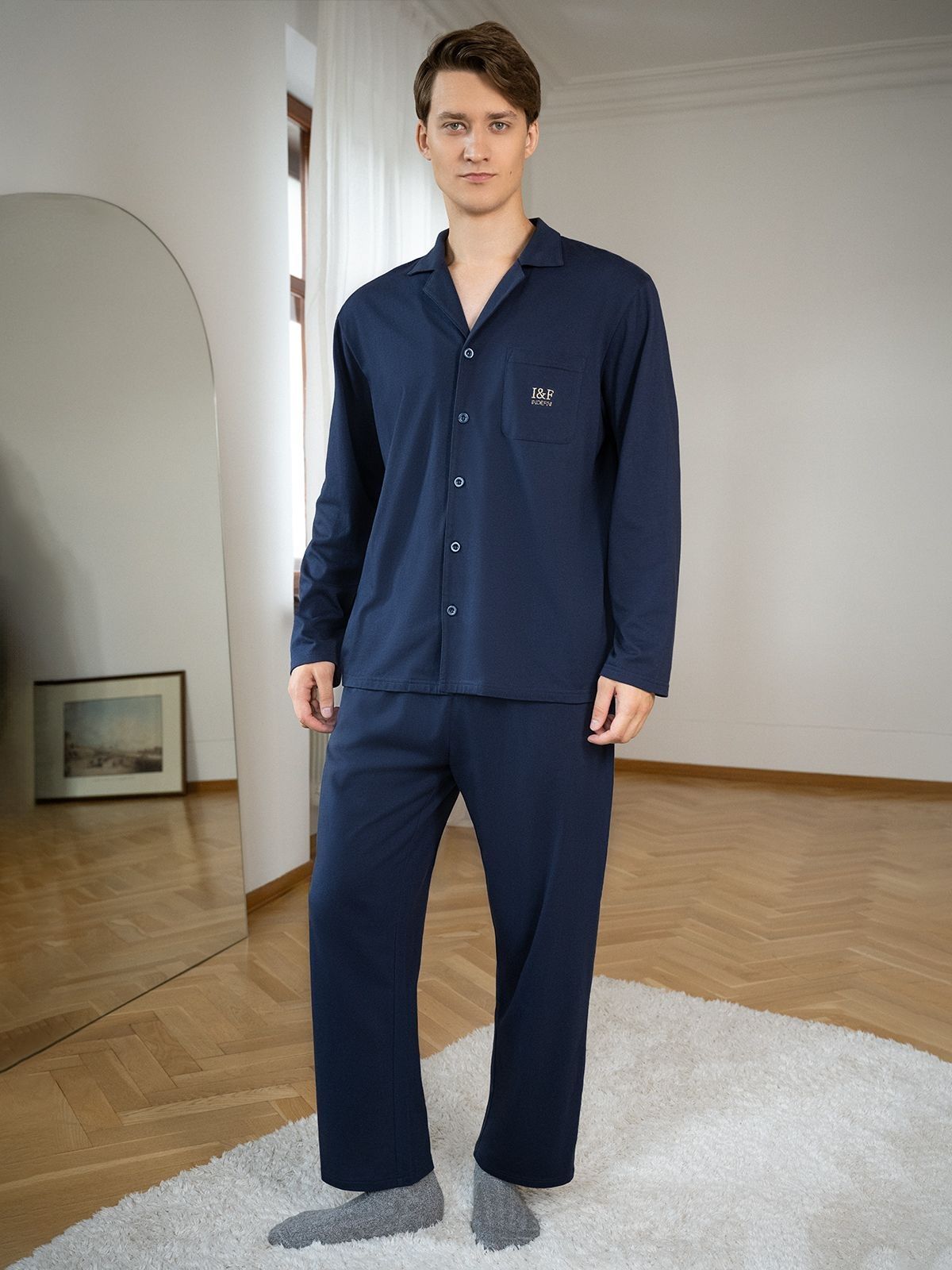 Мужские брюки выполнены из хлопкового футера с начёсом. Брюки прямые с высокой посадкой, с карманами. Модель универсальна и сочетается, как с толстовками, свитшотами, так и с футболками.Рост модели 176 размер одежды 48Длина брюк по боковому шву46 размер 106 см.48 размер 106 см.50 размер 106 см.52 размер 106 см.54 размер 107 см.56 размер 107 см.58 размер 107 см.60 размер 107 см