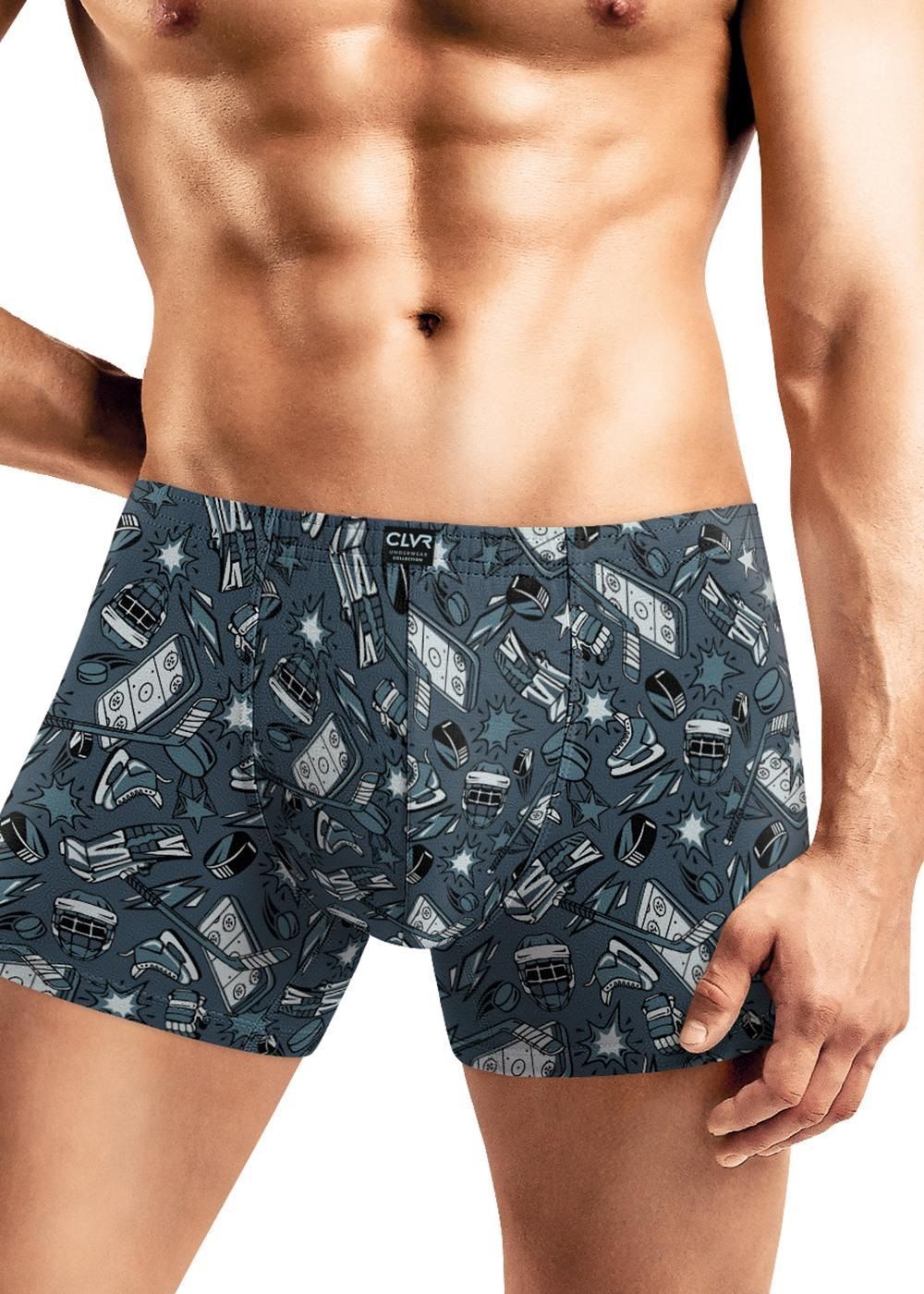 Шорты удлиненные комфортной посадки выполнены из оригинального полотна в игровую набивку. Трусы дополнены имиджевой жаккардовой резинкой.