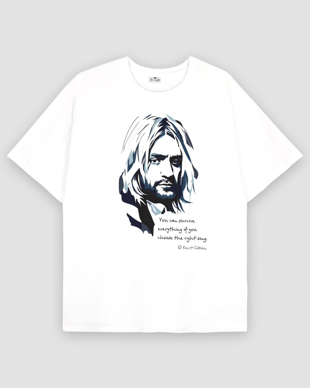 Футболка мужская оверсайз с втачным удлиненным рукавом. Горловина круглая, обработана воротником из рибаны. Горловина спинки внутри обработана настрочной планкой из кулирки. Низ изделия и рукавов обработан швом вподгибку. На полочке принт шелкография. Надпись переводится как "Все можно пережить, если подобрать нужную песню". Модель рассчитана на рост 176-182см.