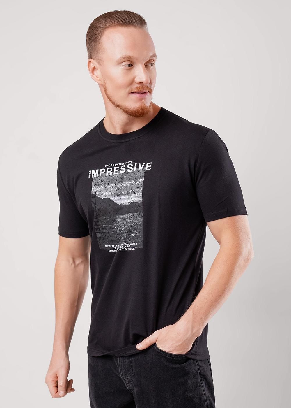 Футболка свободного кроя с круглым вырезом горловины и коротким рукавом. Модель выполнена из трикотажного хлопкового полотна. Изделие дополнено дизайнерским принтом и имиджевой фурнитурой. Универсальная вещь мужского гардероба на каждый день.